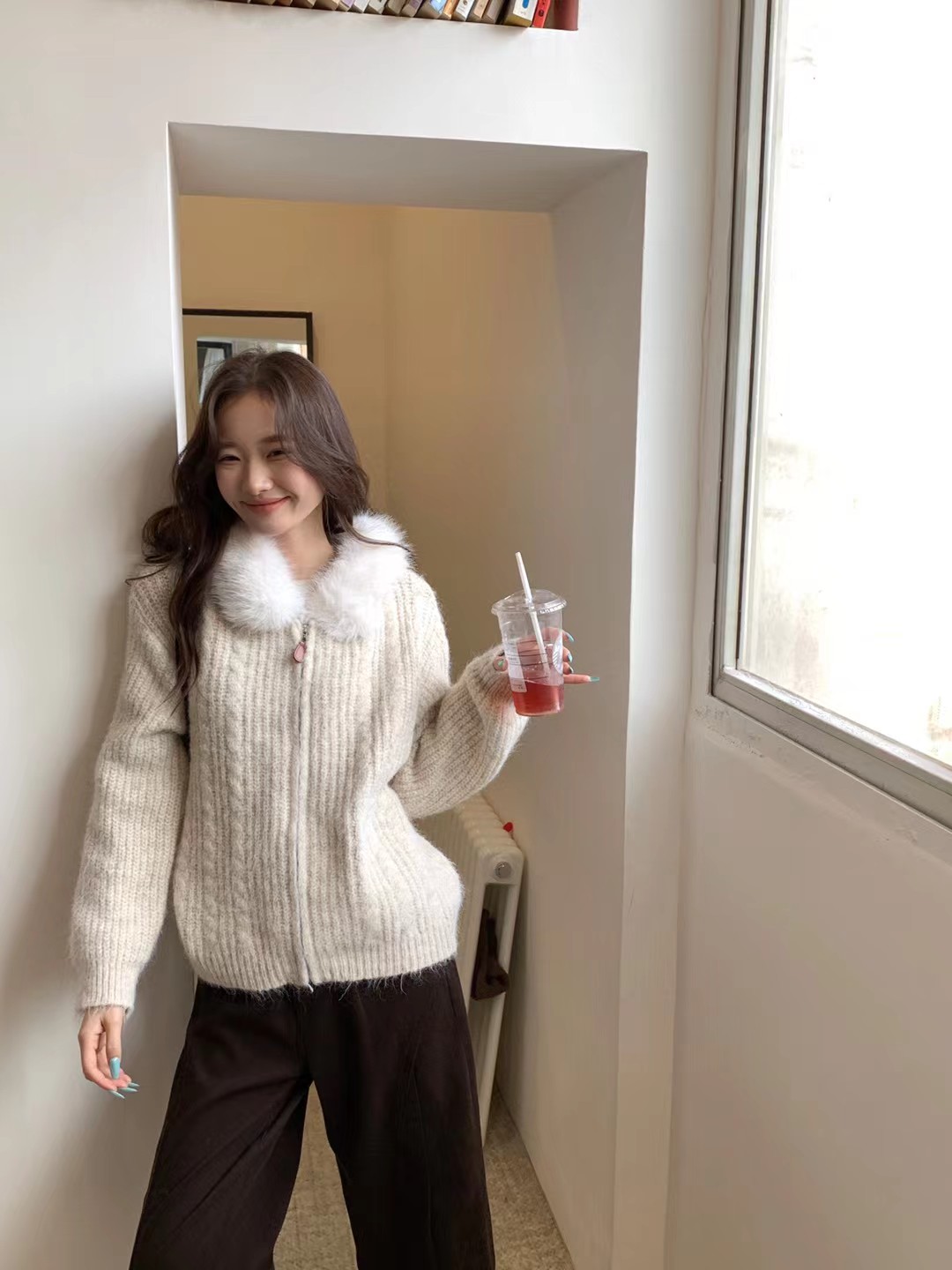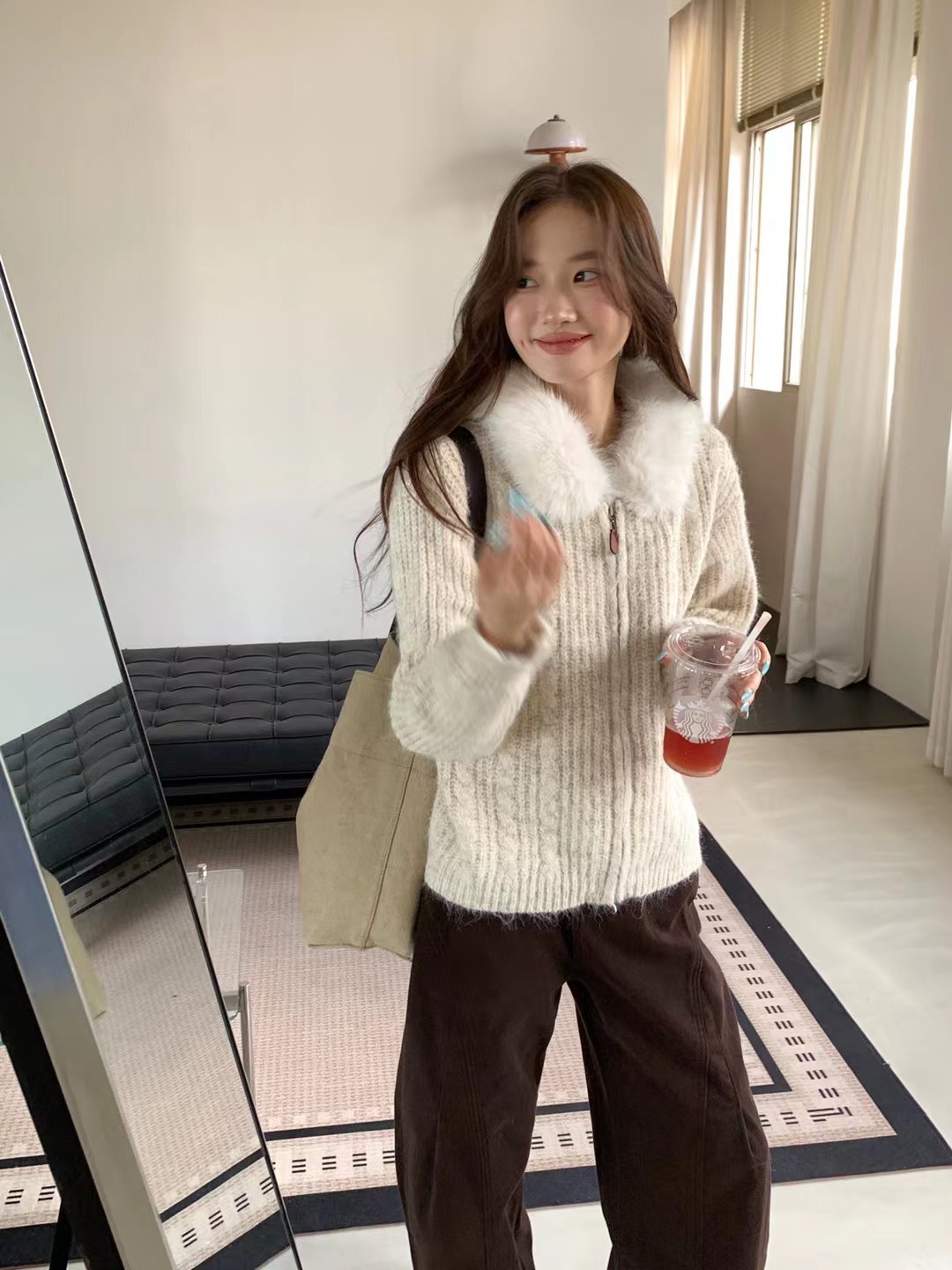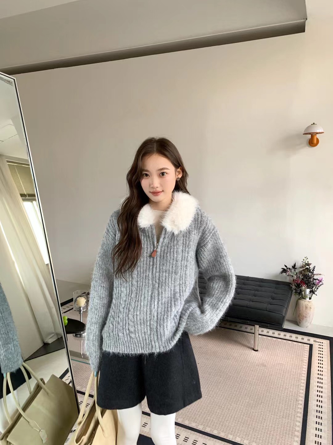韩系时尚气质大毛领羊驼毛衣外套-纪念日百货门店同款167896646