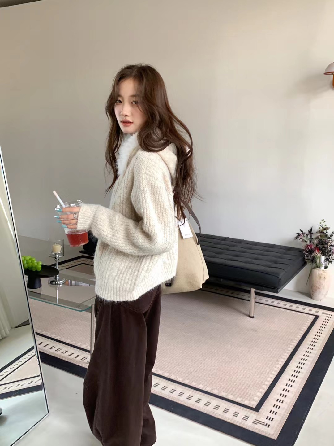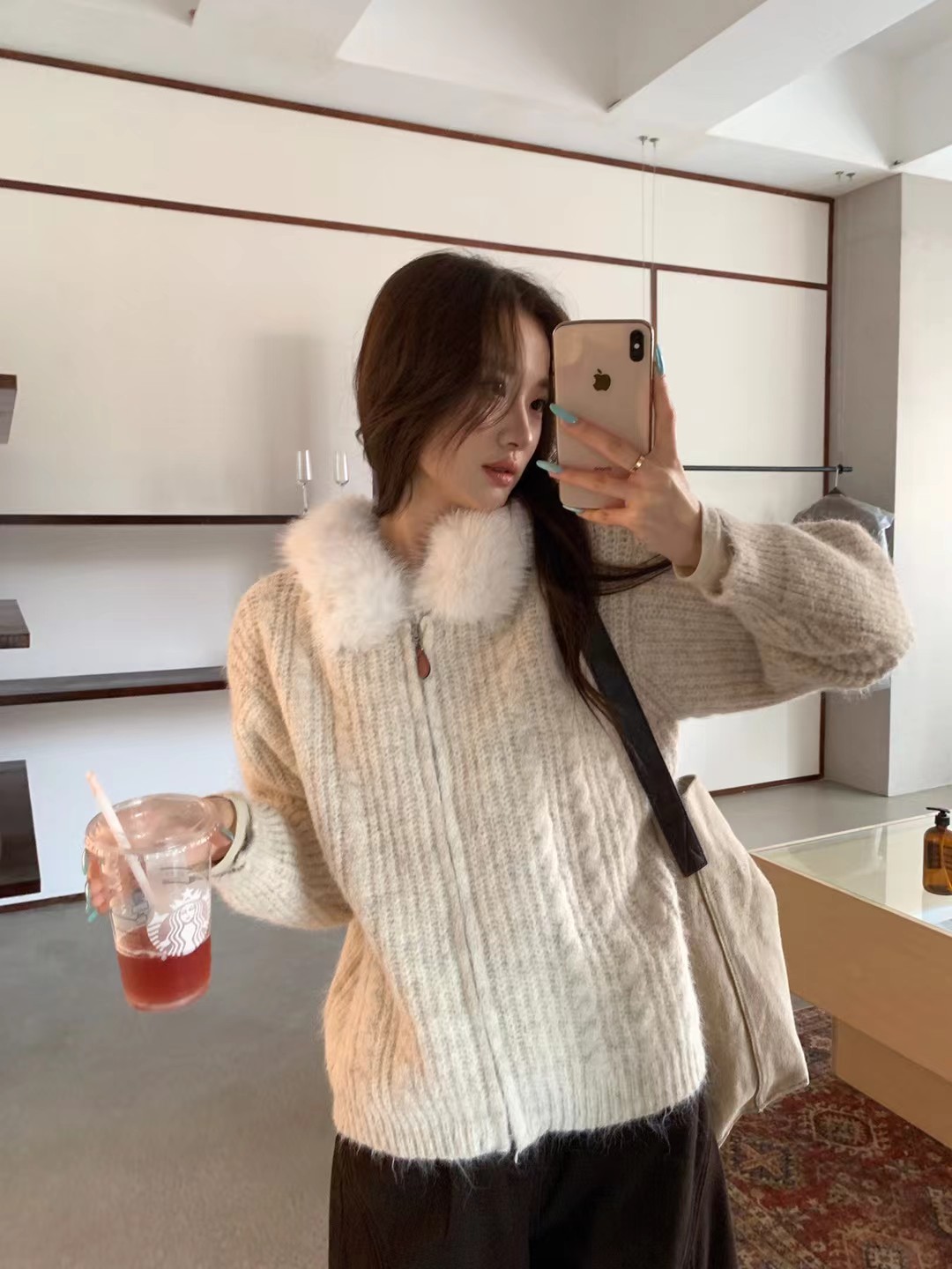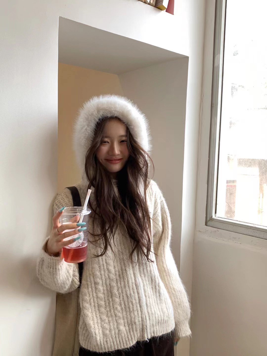 韩系时尚气质大毛领羊驼毛衣外套-纪念日百货门店同款167896646