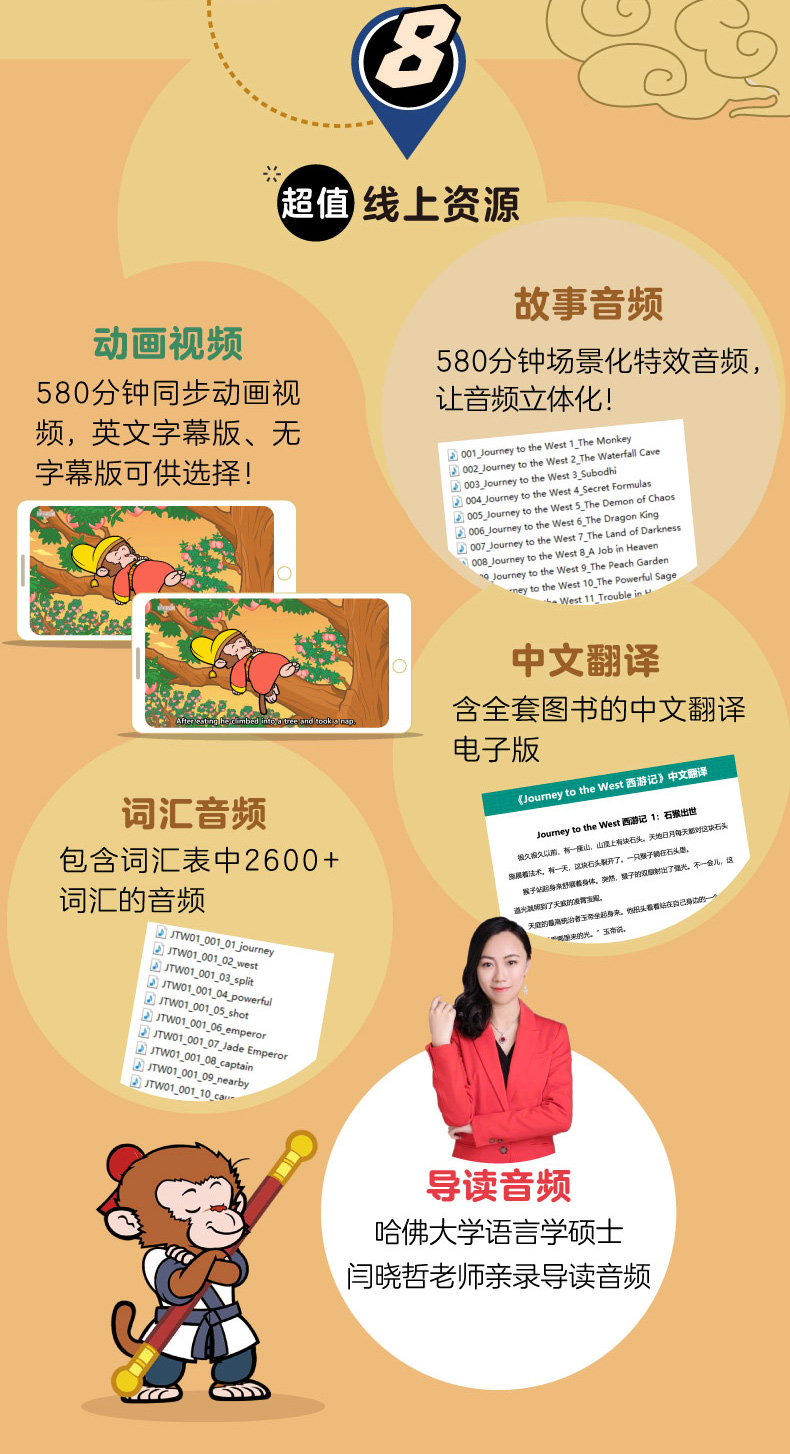 【宝莉爹专属】Journey to the West 西游记,包含18册故事书+2册练习册,附赠21张人物闪卡,赠音频和动画