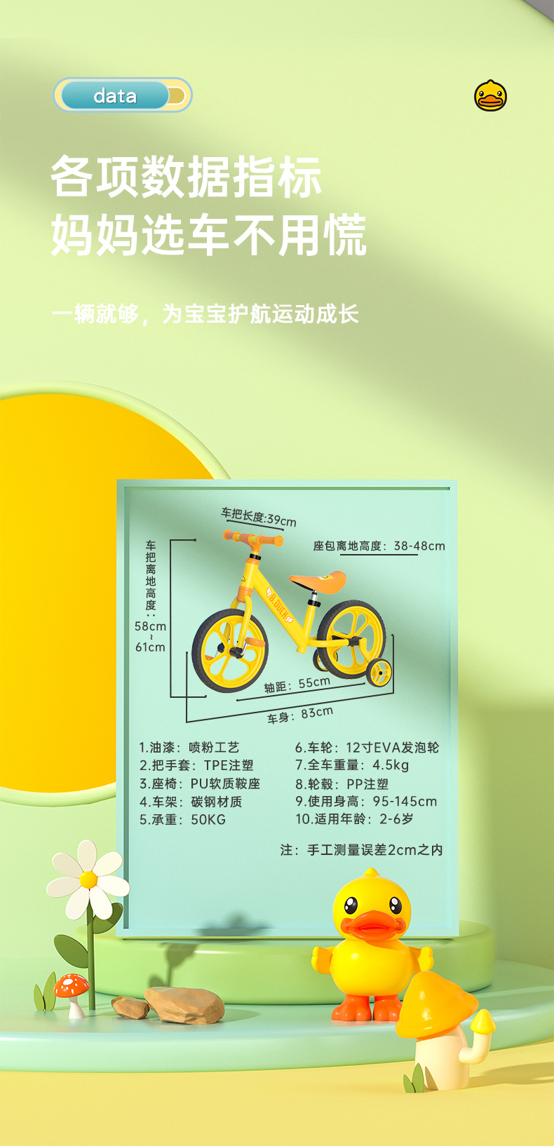 【专柜同款精品】BP6220507 B.Duck 儿童二合一平衡车
