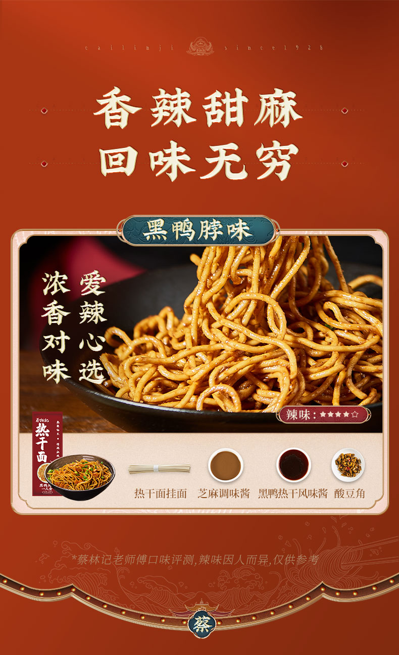 【满99-50 满199-100】蔡林记热干面一人份黑鸭味×3袋