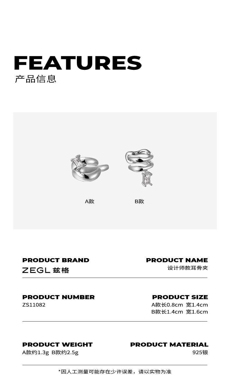 ZEGL设计师925银耳夹女无耳洞女耳骨夹耳环2021年新款潮时尚耳饰