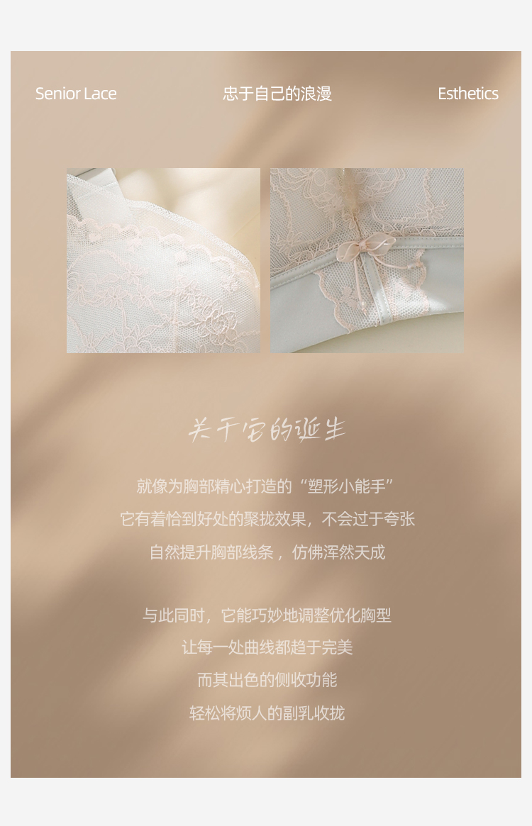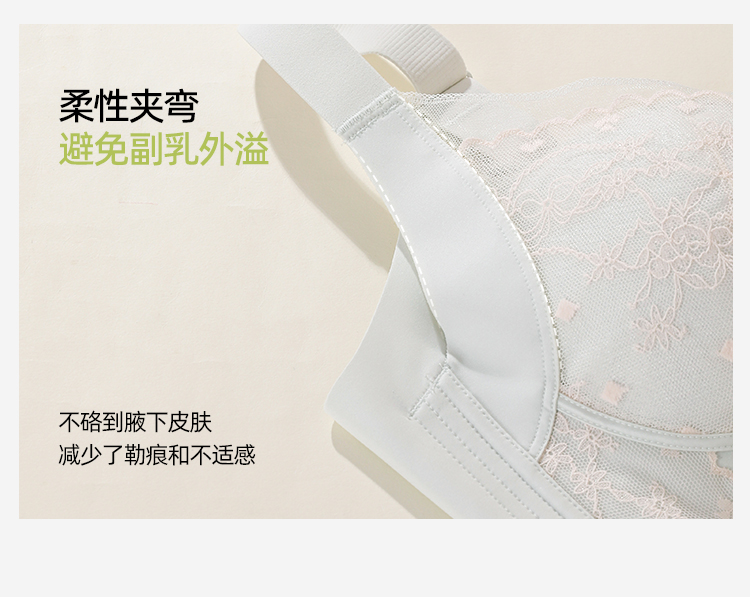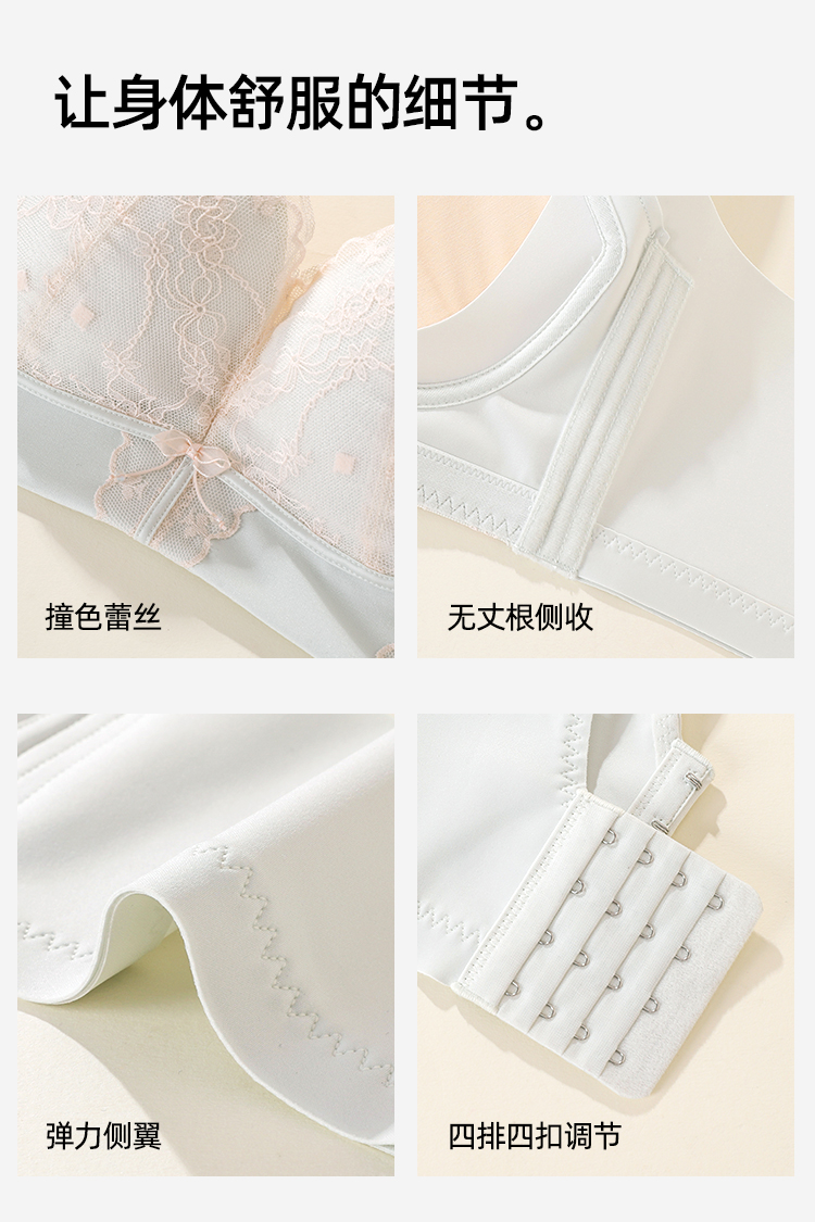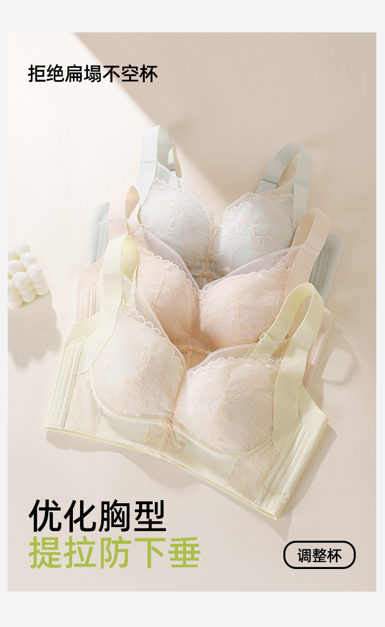 熳洁儿 小胸聚拢提拉文胸中薄杯塑形撞色蕾丝莫代尔26261519