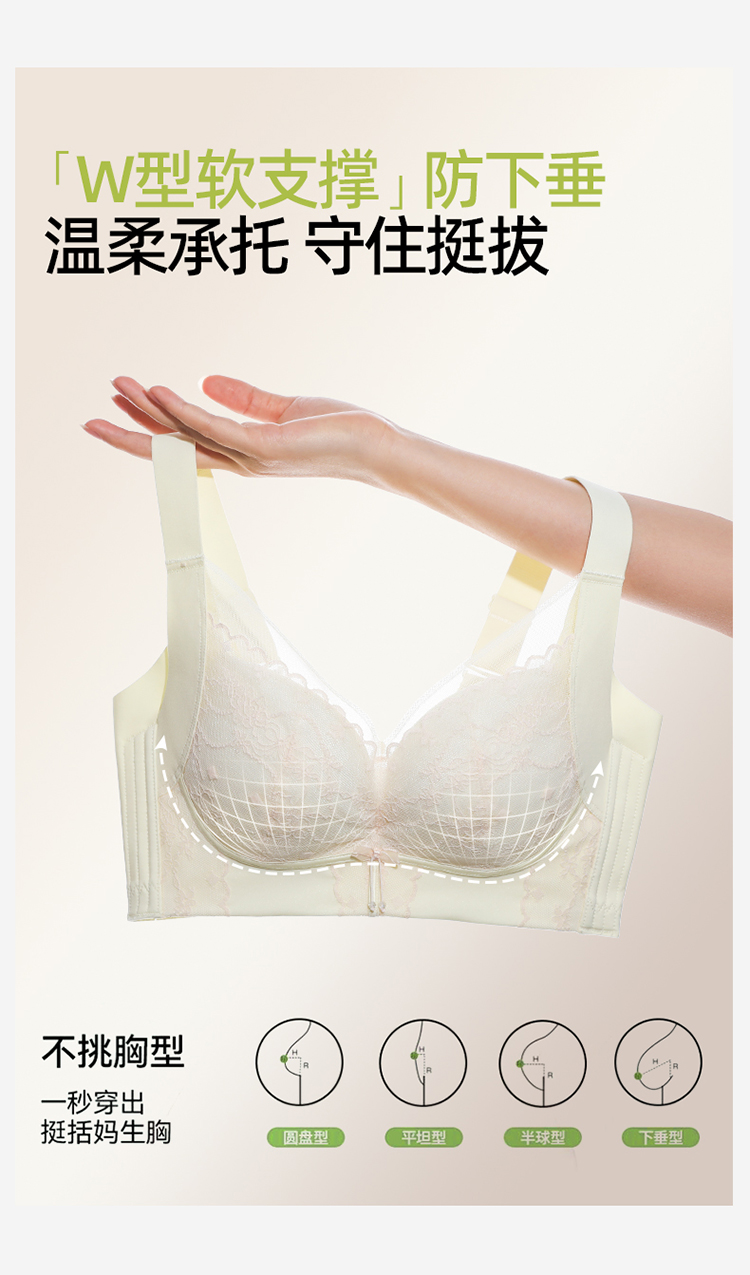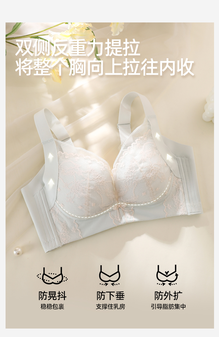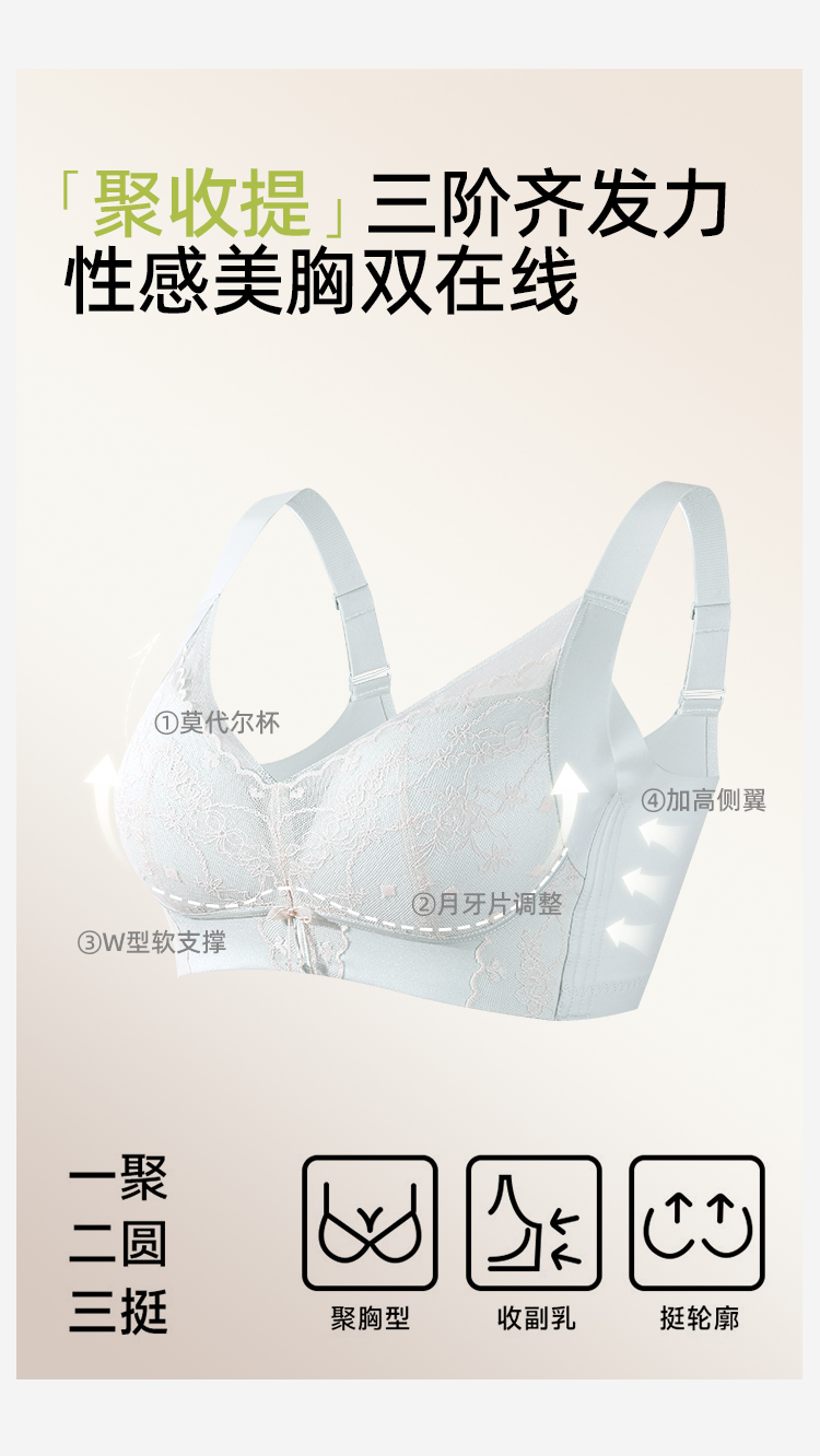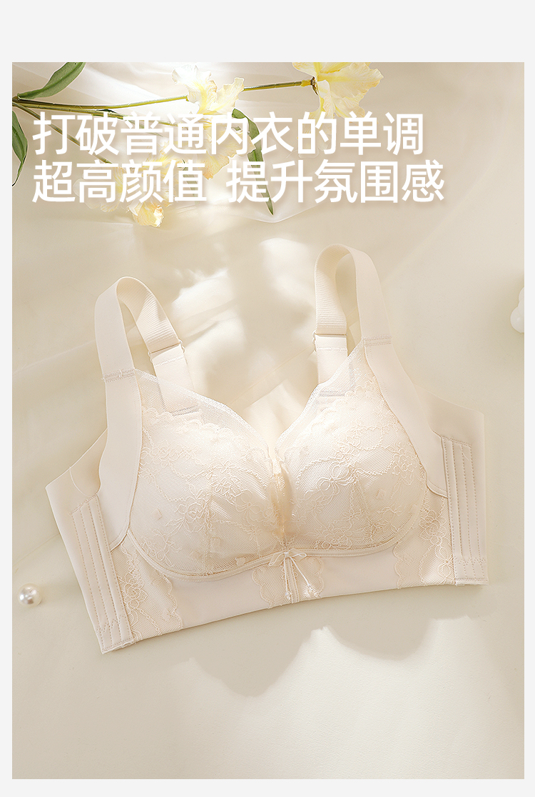 熳洁儿 小胸聚拢提拉文胸中薄杯塑形撞色蕾丝莫代尔26261519