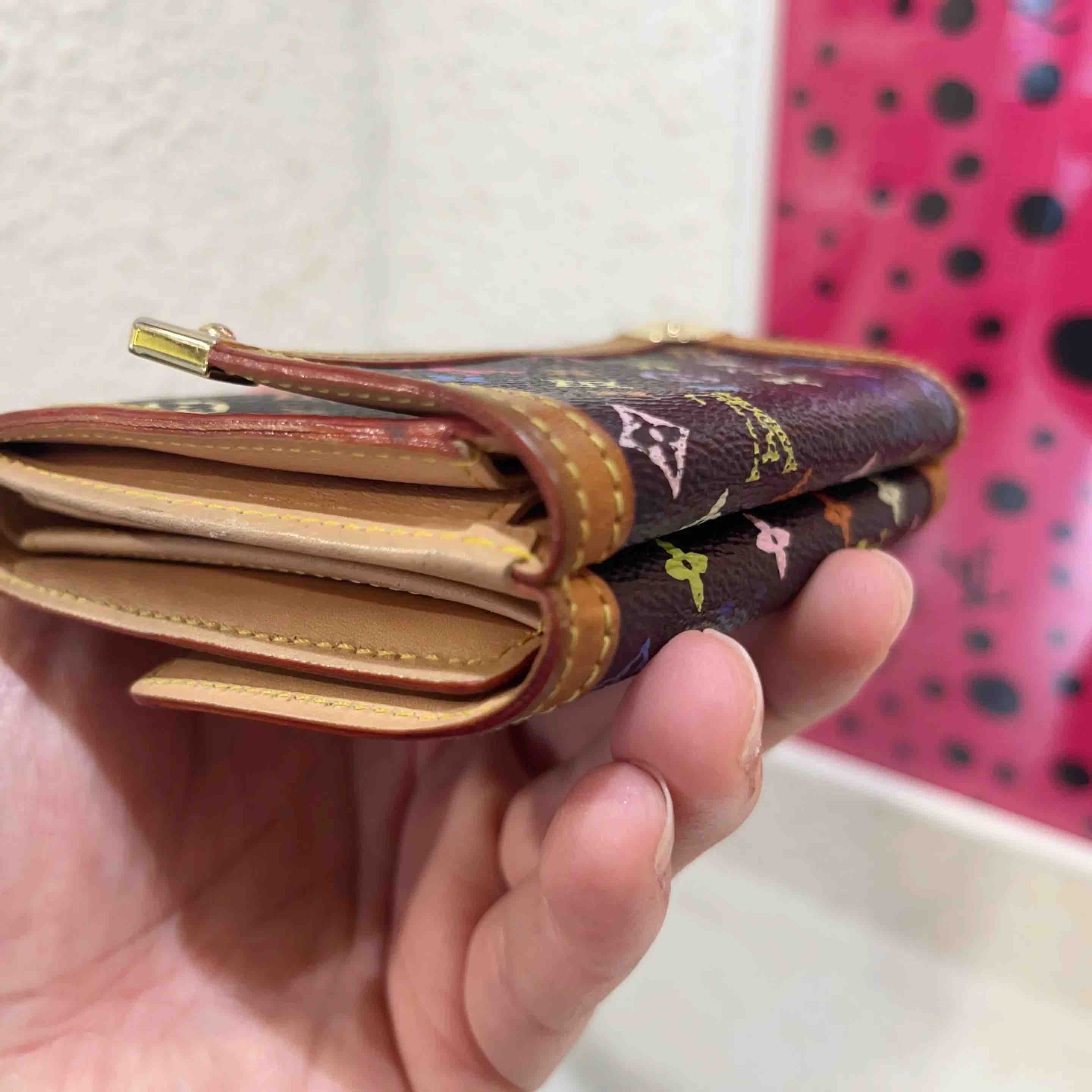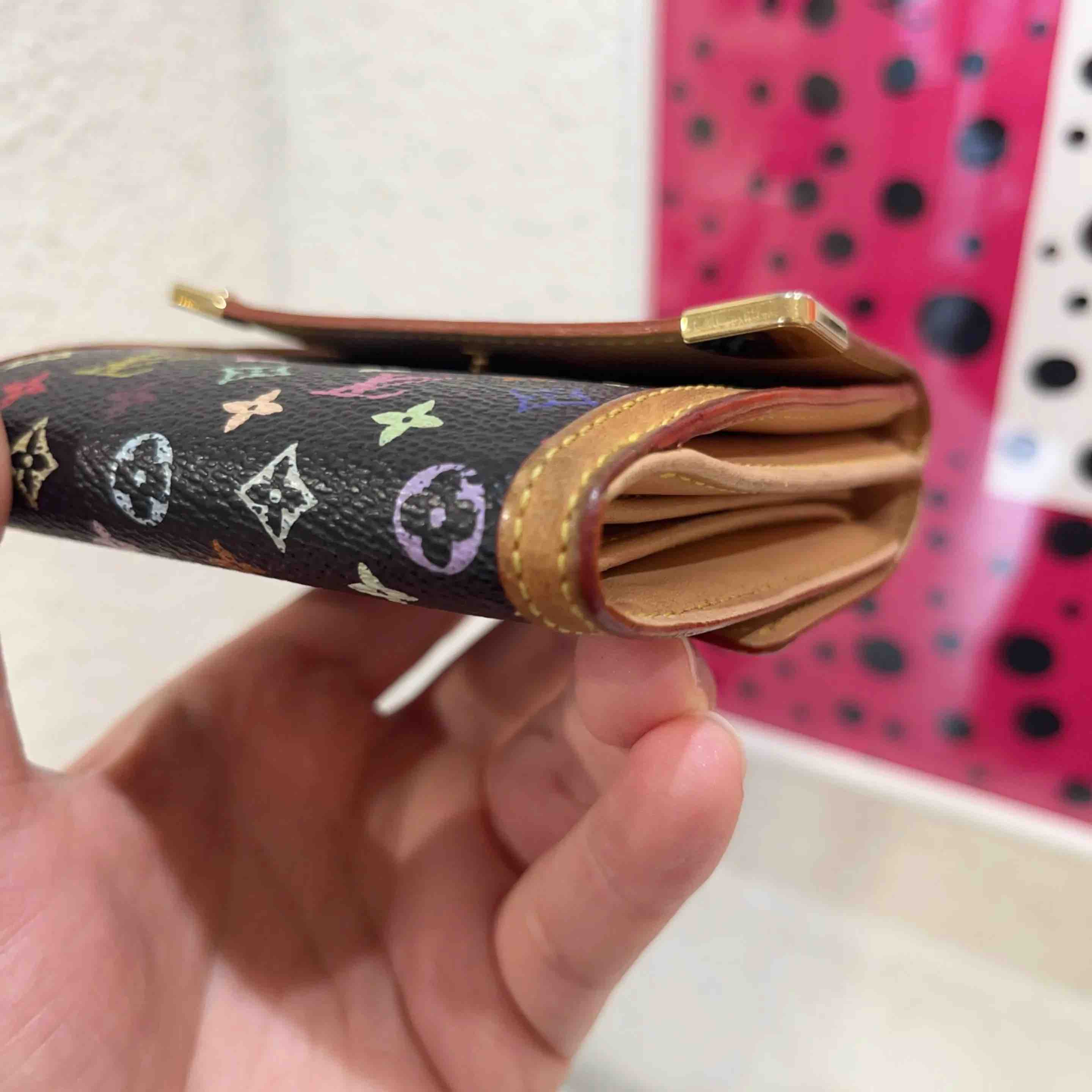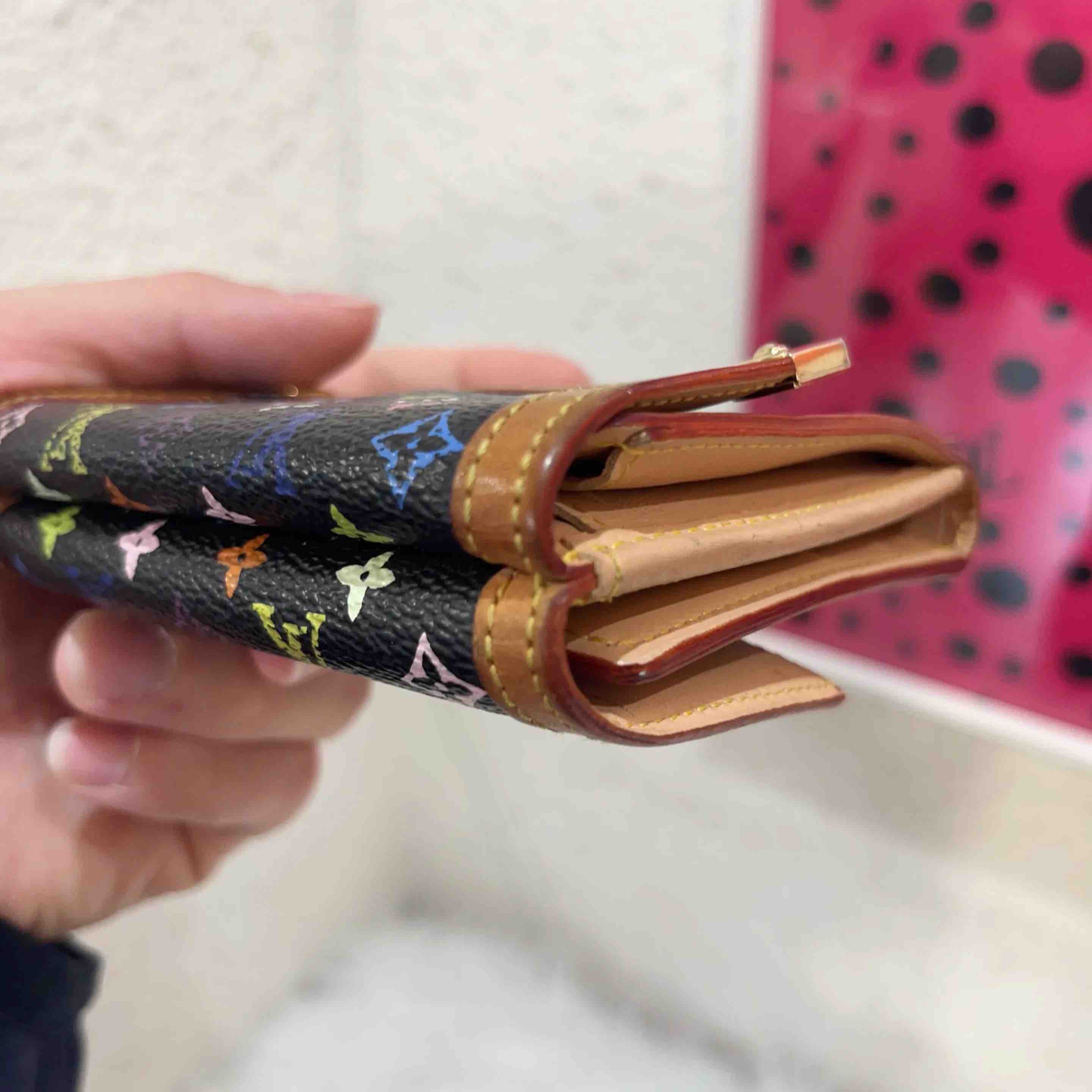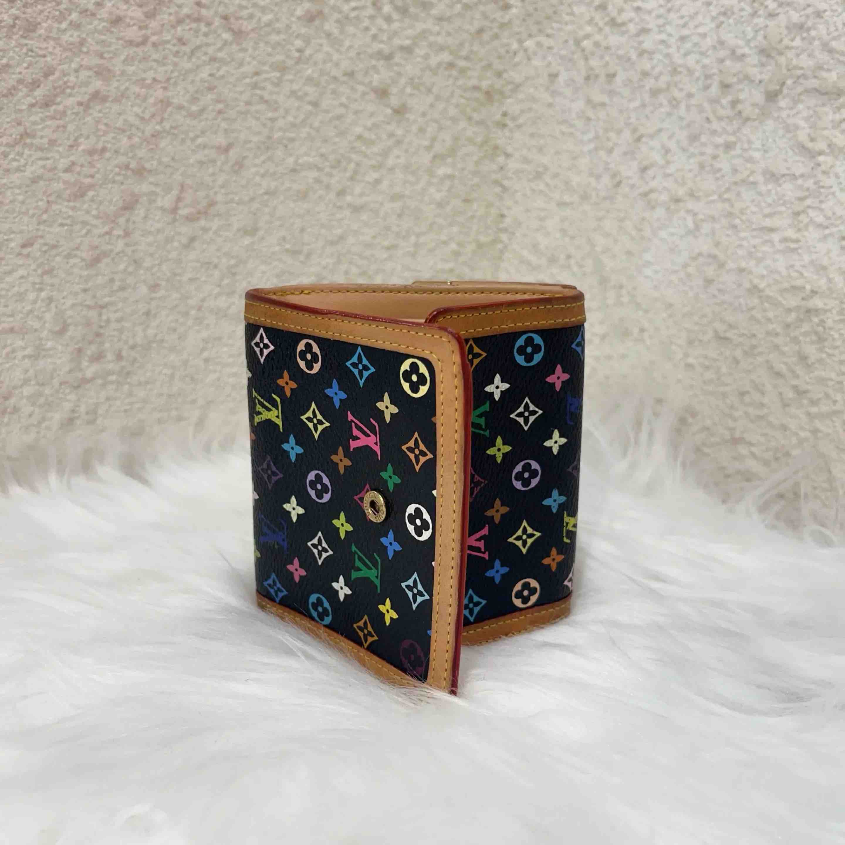 【商品详情】正品二手 LV 村上隆 黑三彩 卡包👀93新 11*8。植鞣革正常使用感。中古市场超热门。