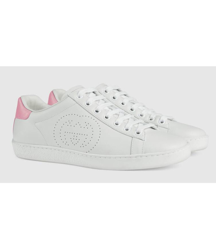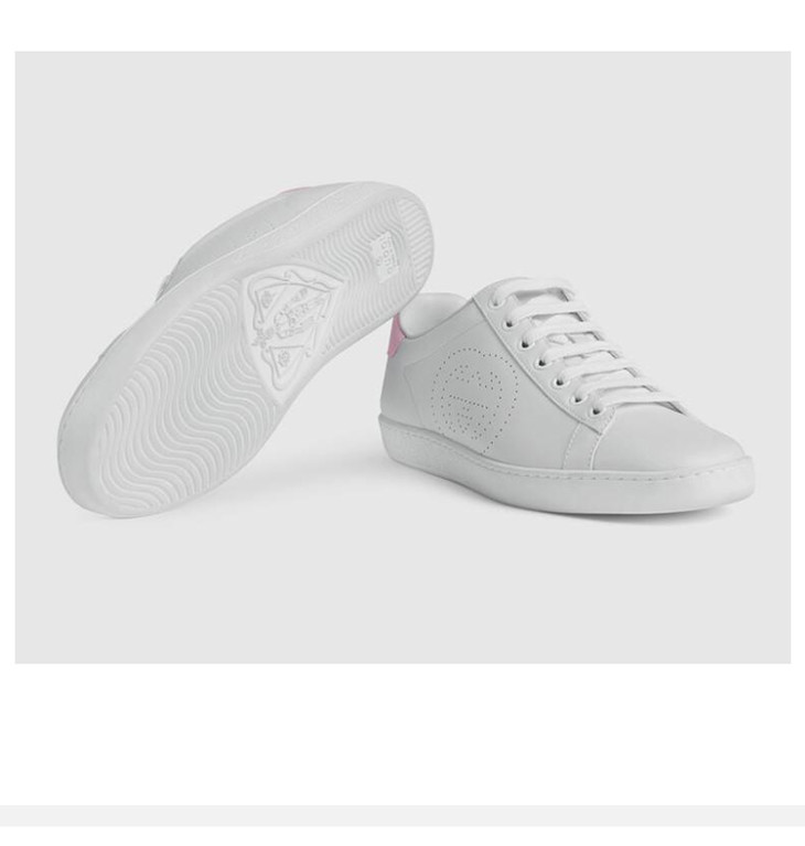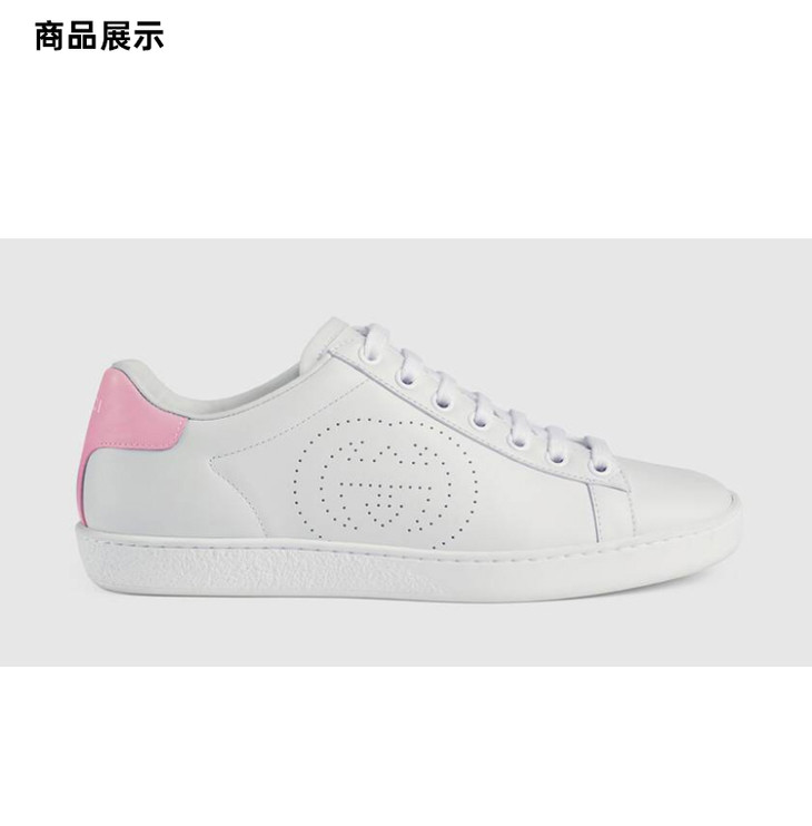 GUCCI 古驰 Ace系列女士互扣式双G运动鞋 粉尾 白色 598527 AYO70 9076