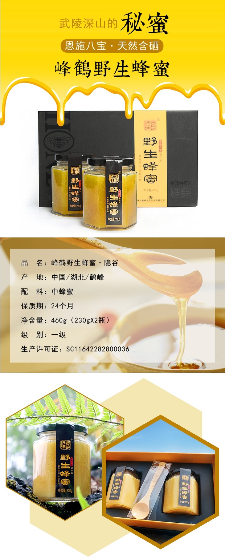 峰鹤 隐谷野生蜂蜜230g*2 湖北恩施
