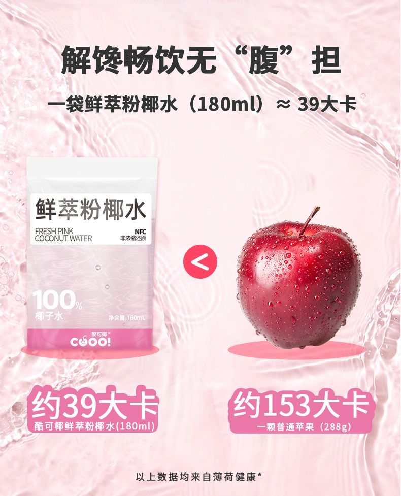 ✅而酷可椰1袋椰子水的热量<半颗苹果的热量🍎,真的🉑太没腹担了!热量刺客🤺💨退‼️