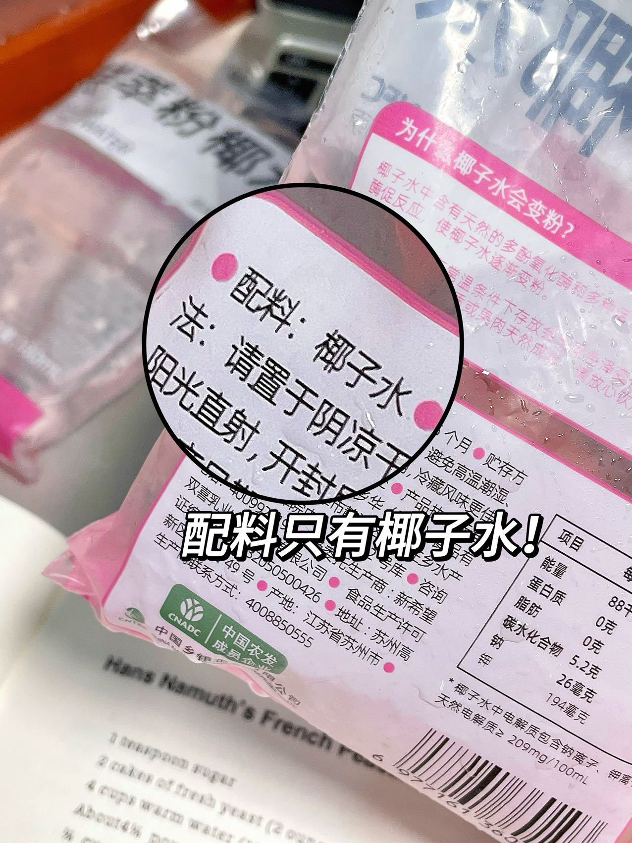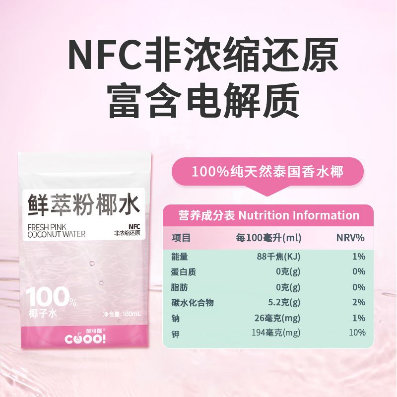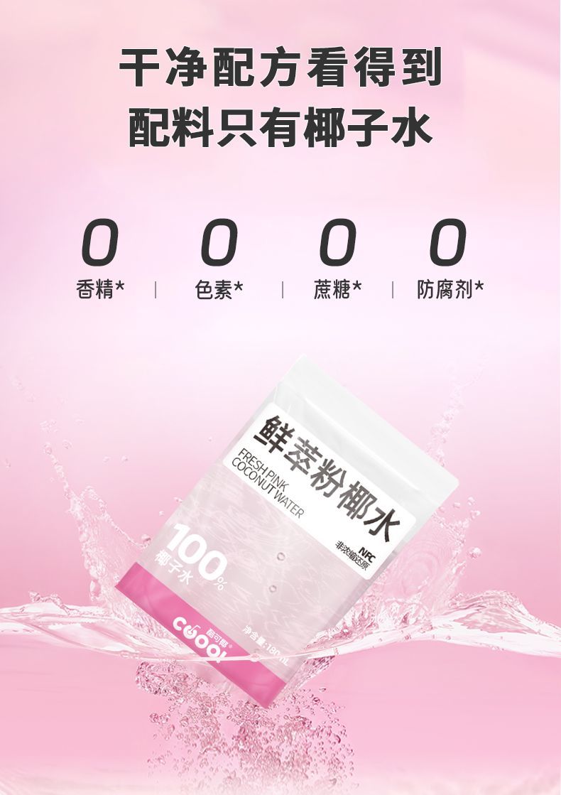 ✅鲜萃粉椰水 100%NFC非浓缩还原 🚫0白砂糖、0香精、0色素、0防腐剂,不加一滴水 配料表只有椰子水👍