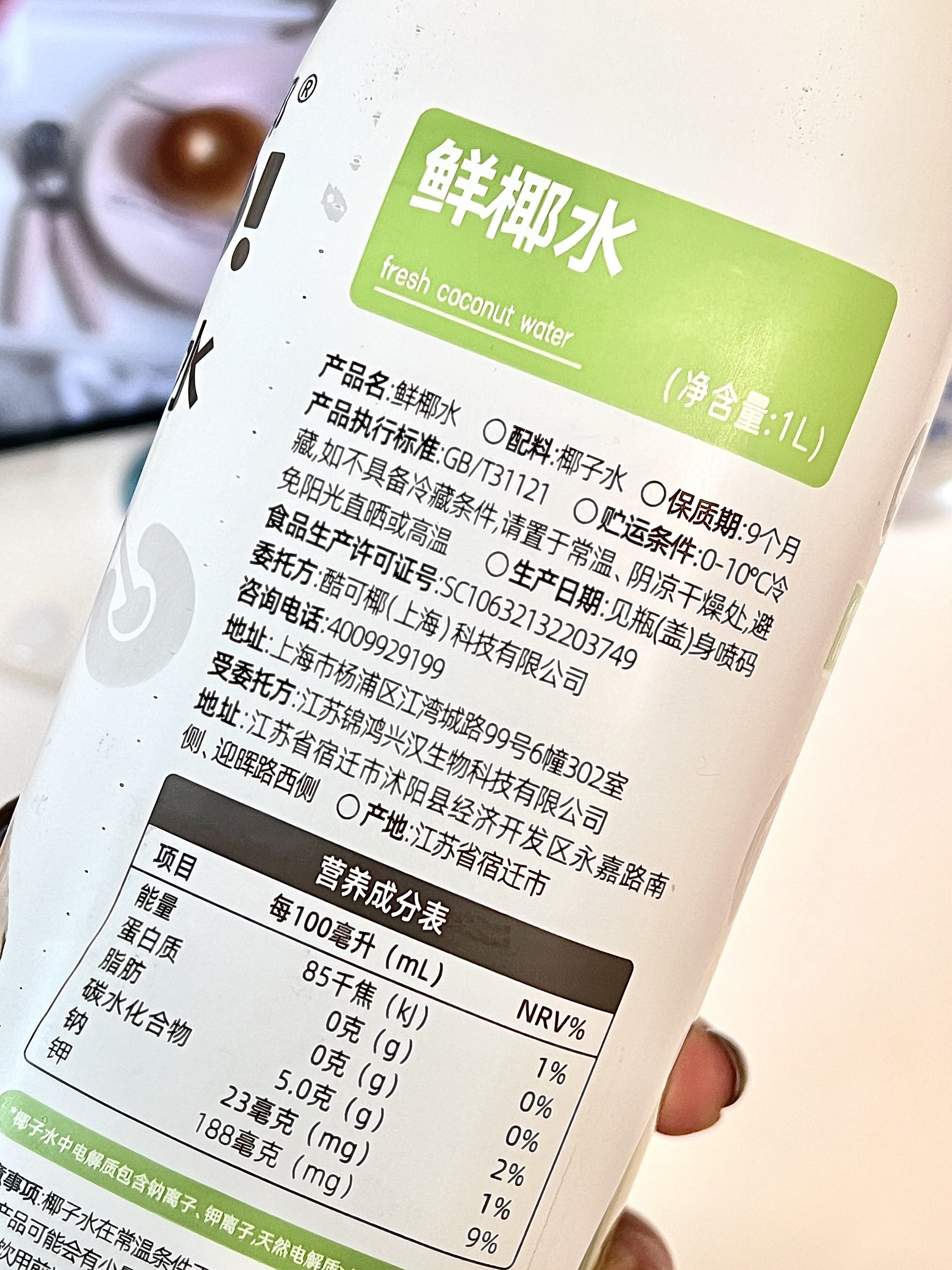 ✅配料干净:配料表只有椰子水,0脂、0色素、0香精、0防腐剂。👍