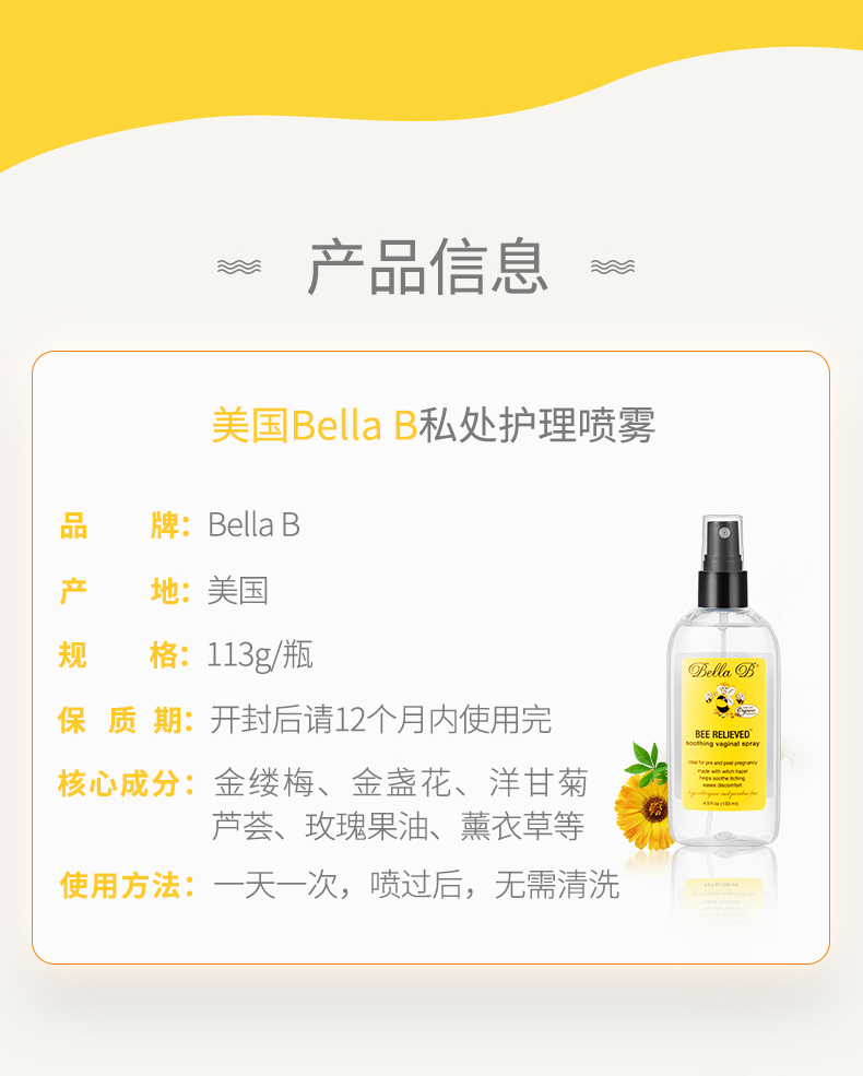 美国Bella B贝拉碧女性私密修护舒缓喷雾5oz(113g)/瓶(12瓶/箱JPY带授权招加盟代理