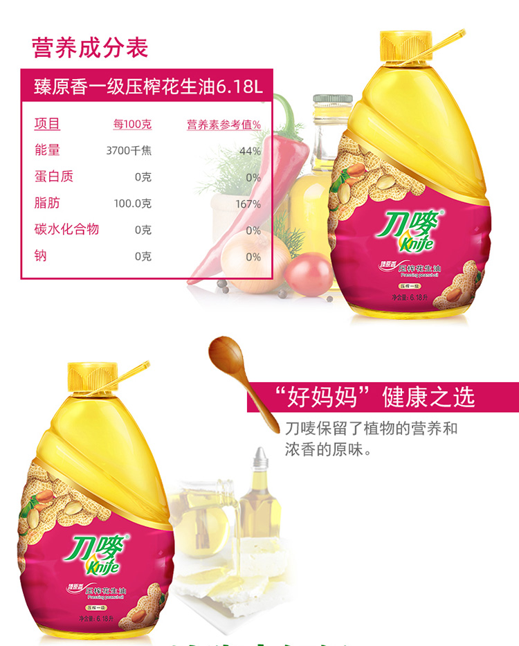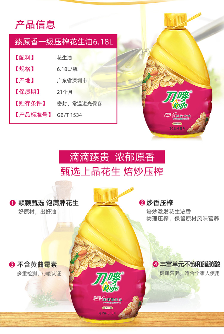 刀唛 食用油 臻原香花生油6.18L 精炼压榨一级