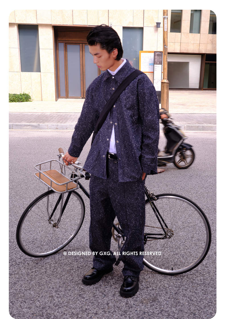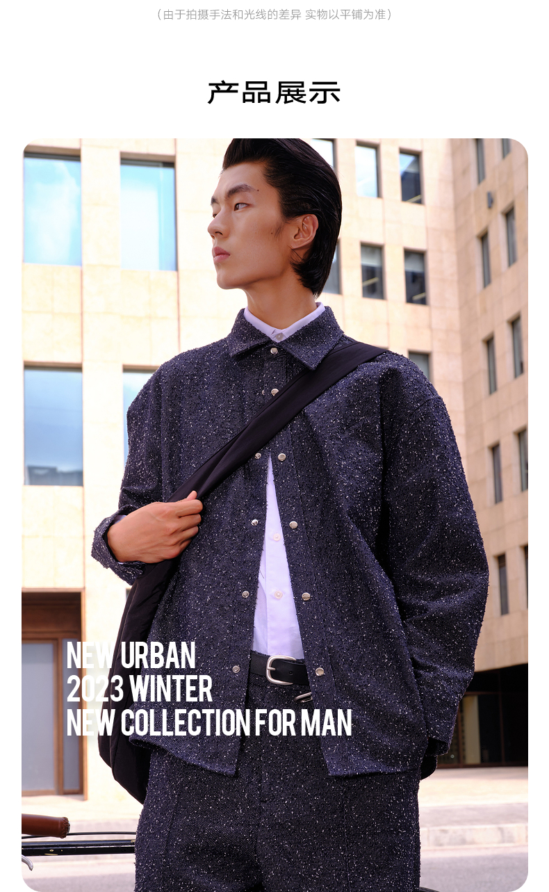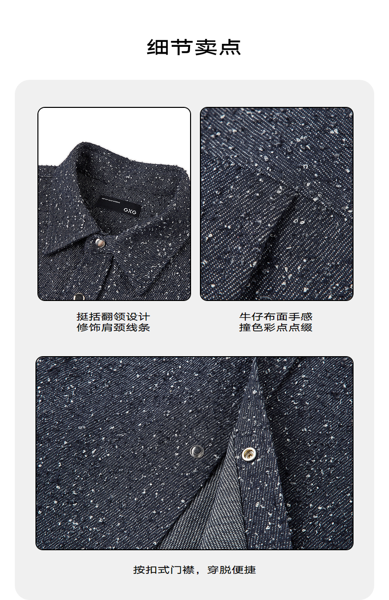 GXG男装 蓝色肌理感宽松牛仔长袖衬衫男时尚衬衫 冬季热卖