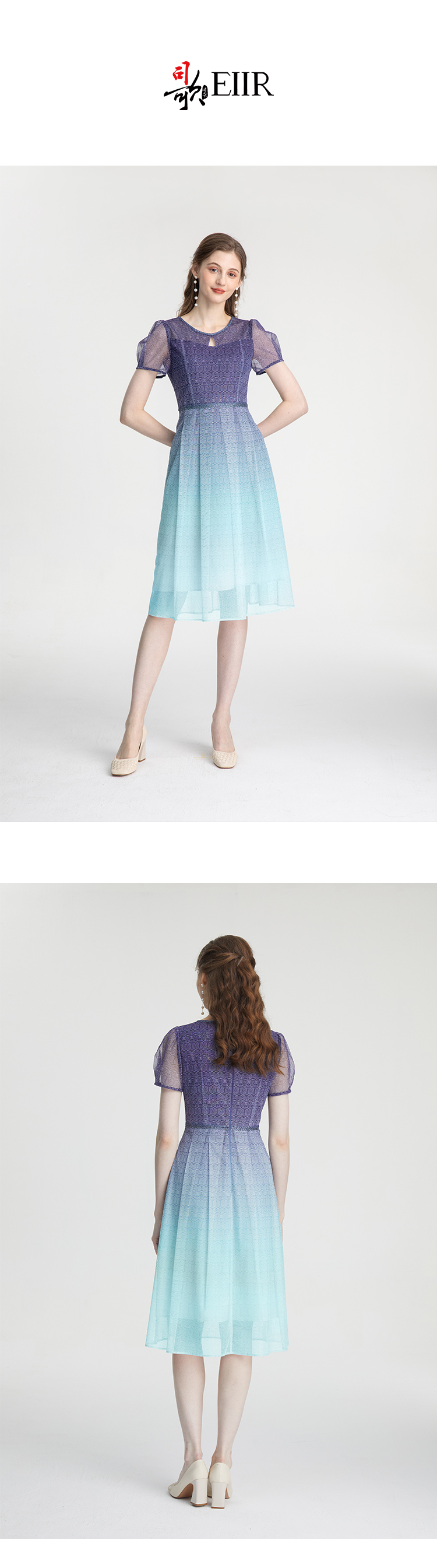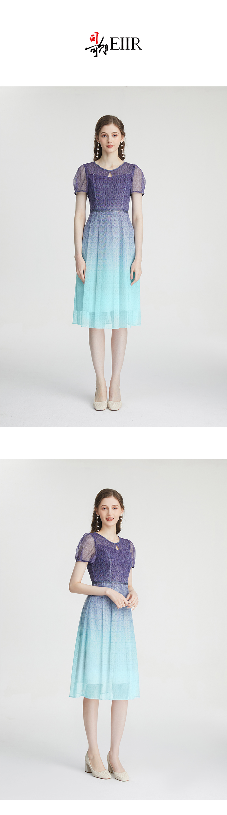 司歌棉短袖连衣裙印花翻领优雅衬衫EA871135