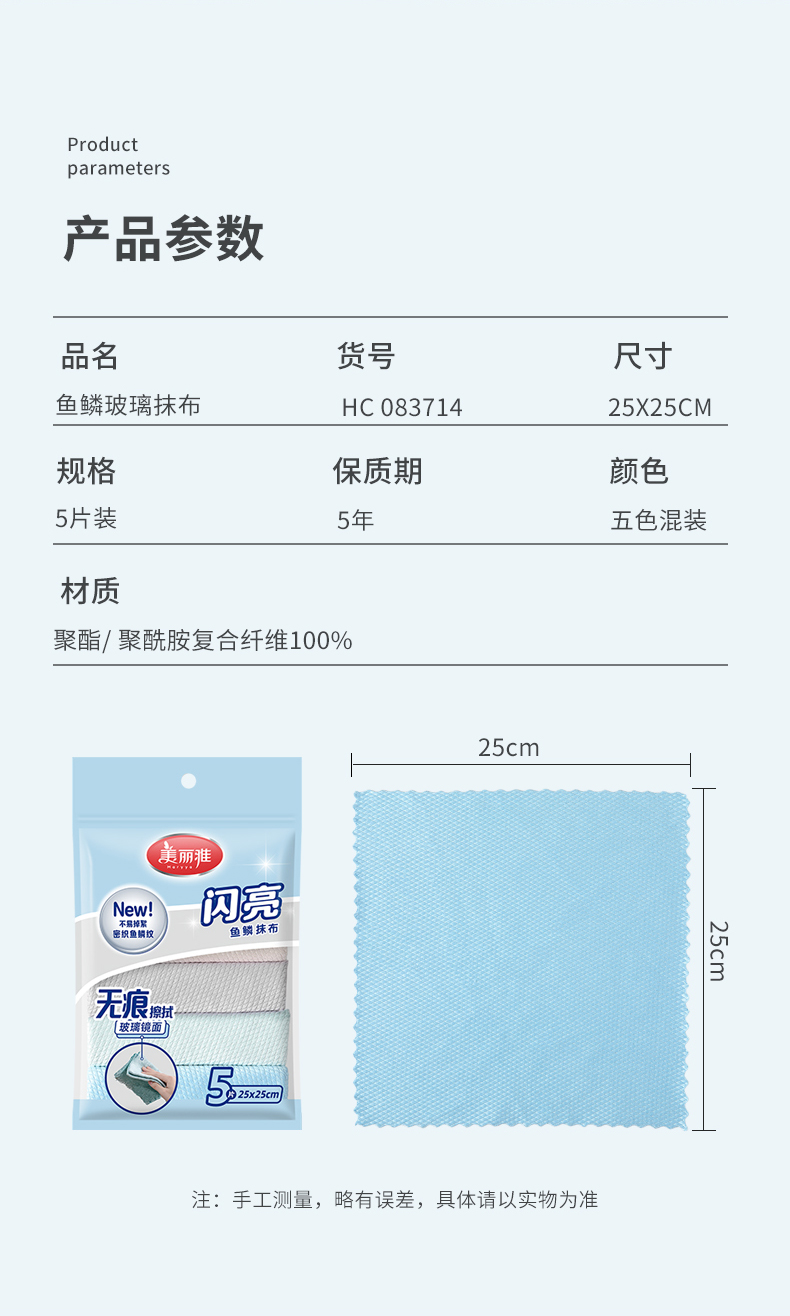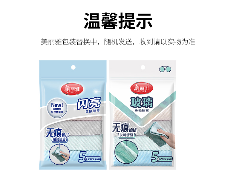 【批发】美丽雅鱼鳞玻璃抹布5片入25*25