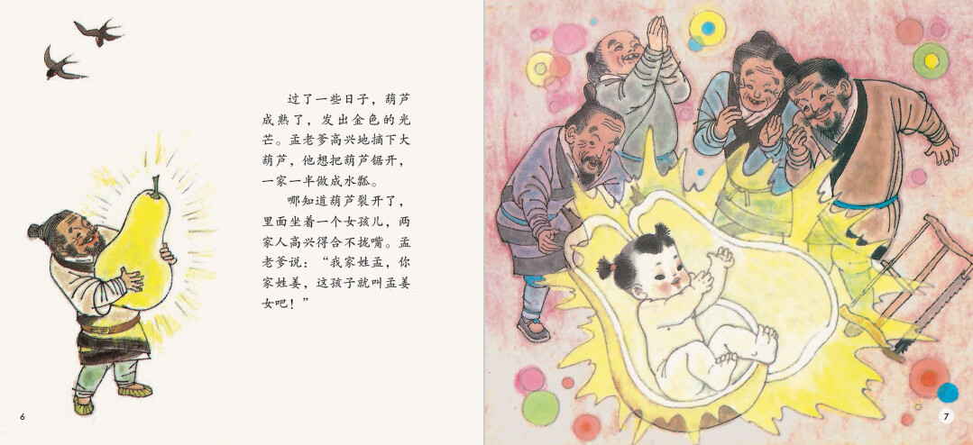 《凤凰山的传说》:勤劳善良的弟弟救下受伤的凤凰。弟弟用凤凰给的种子种出金南瓜。贪婪的哥哥不听凤凰劝诫而自食恶果。