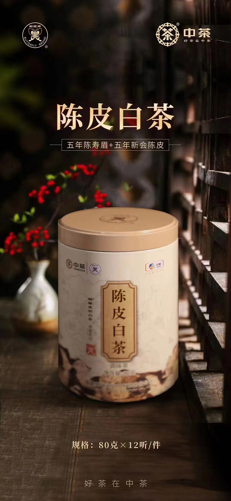 中茶福鼎白茶陈皮白茶5157(五年寿眉+五年新会陈皮)80g