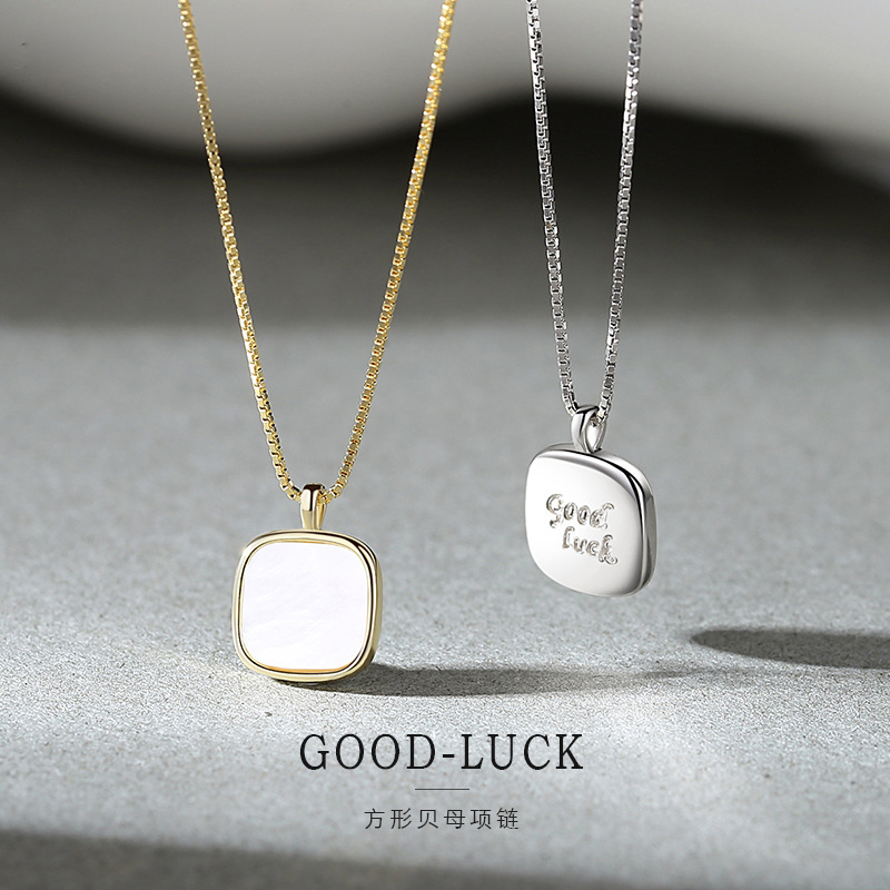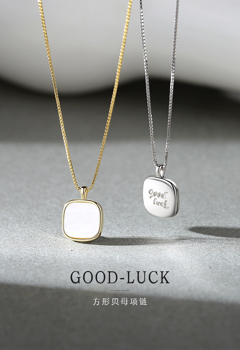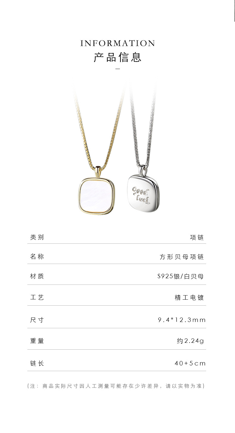 子佩集【幸运贝母】S925银方形贝母锁骨链项链【JHY-N000365X】