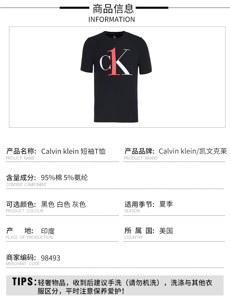 【特惠秒】CK 凯文·克莱 男士弹棉T恤 98682