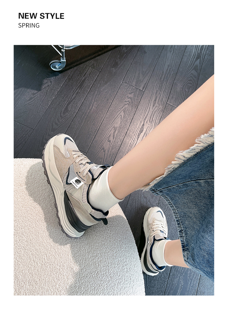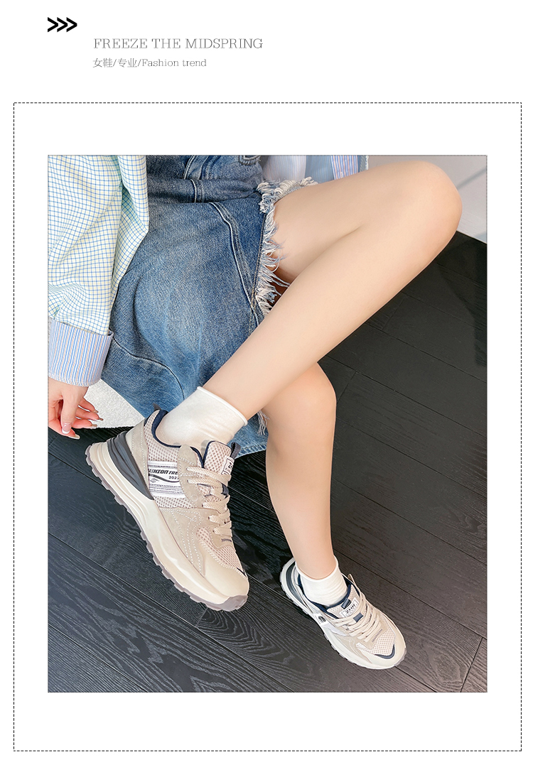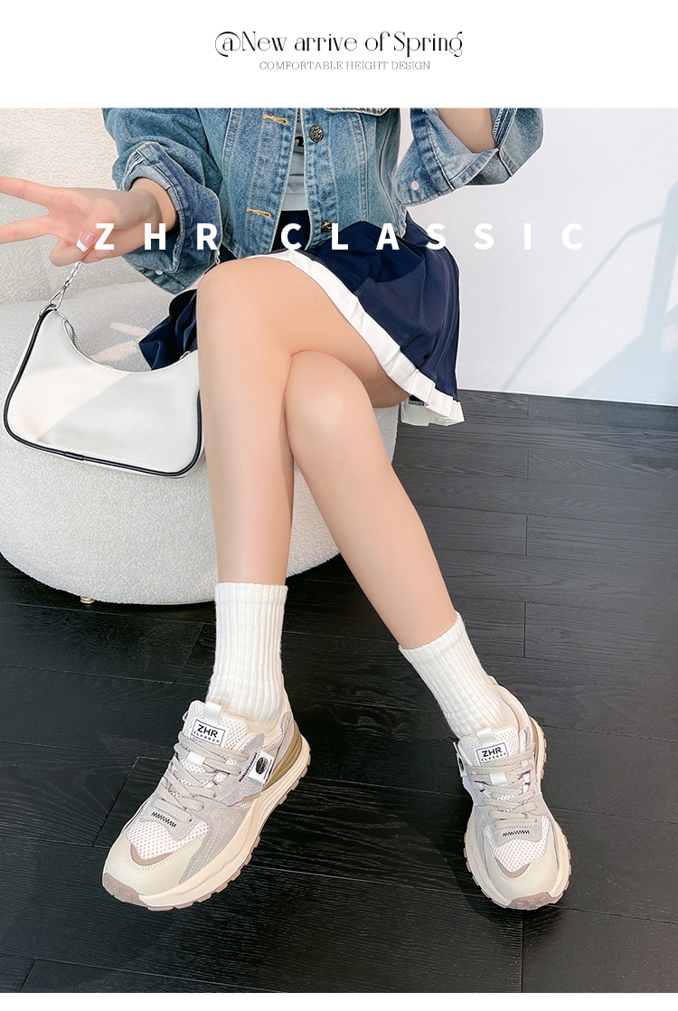 ZHR休闲鞋女鞋2024春季新款时尚百搭减龄清透网面厚底舒适女鞋