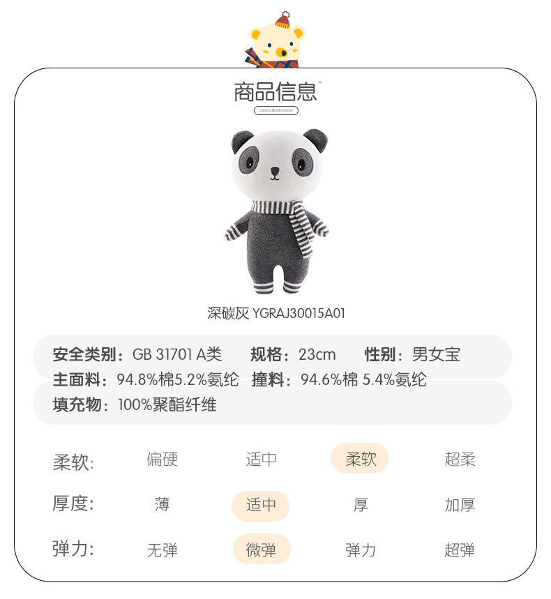 英氏婴儿安抚玩具宝宝棉布艺熊猫玩偶 YGRAJ30015A01