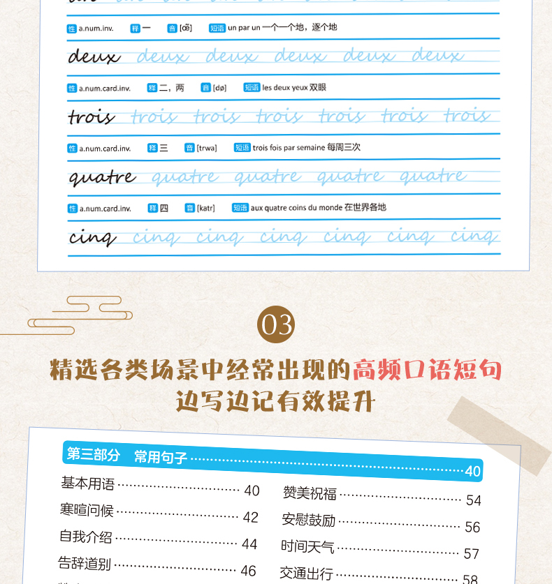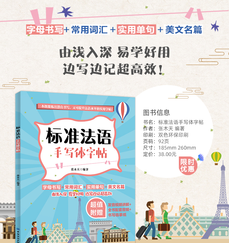 【附发音视频讲解】标准法语手写体字帖 张木天 法语爱好参考用书 法语水平实用字帖提升指南 法语手写词汇单句体训练临摹字帖书