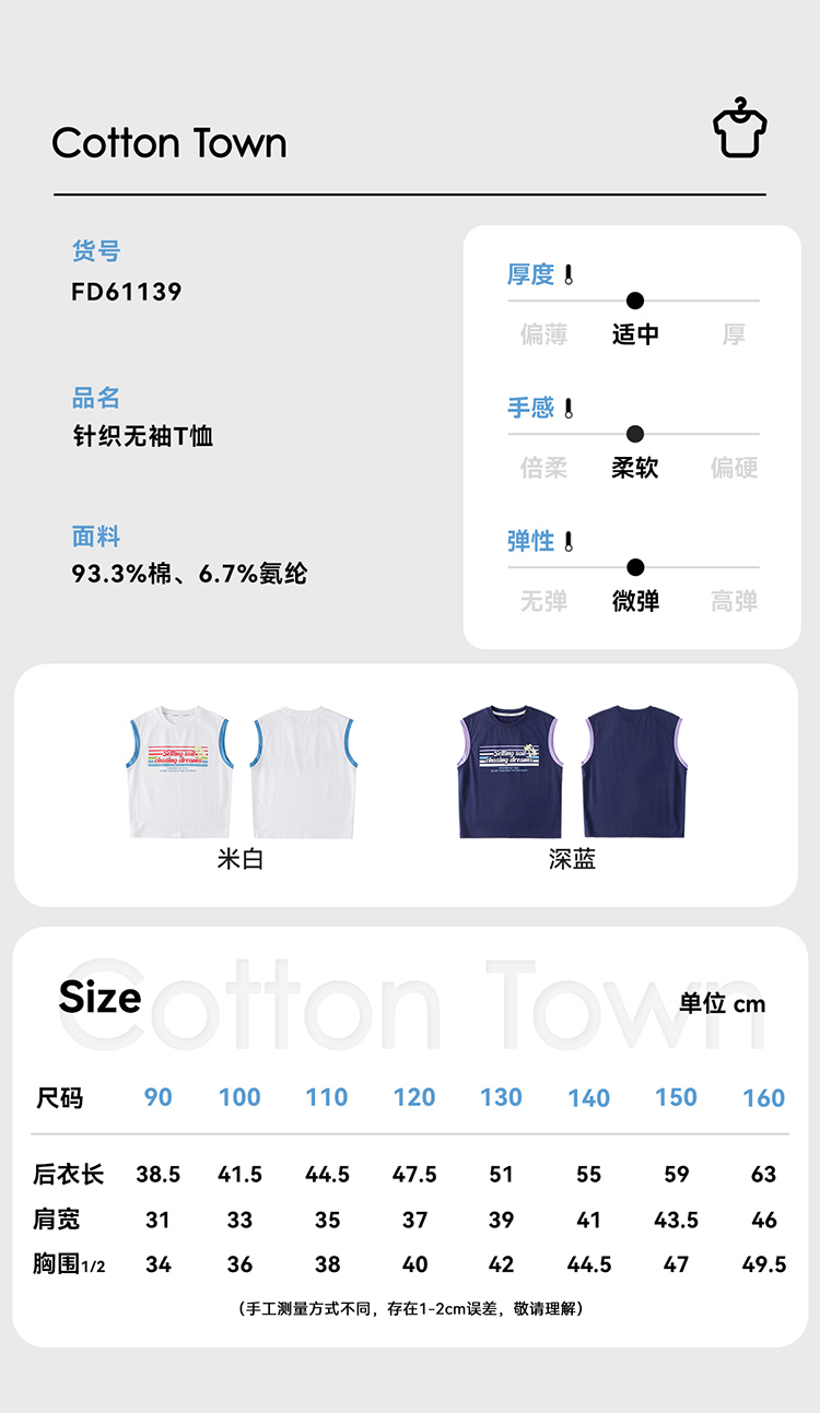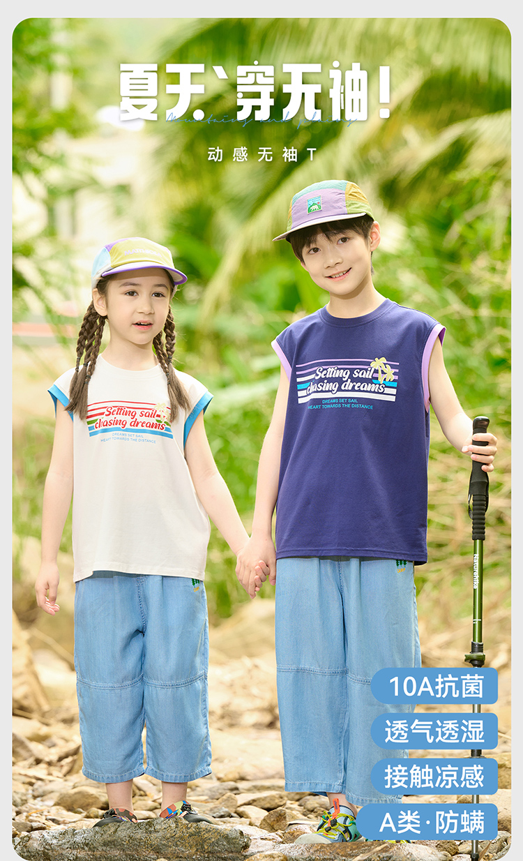 【10A抗菌】棉花堂动感无袖凉感儿童T恤-- FD61139