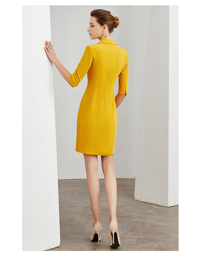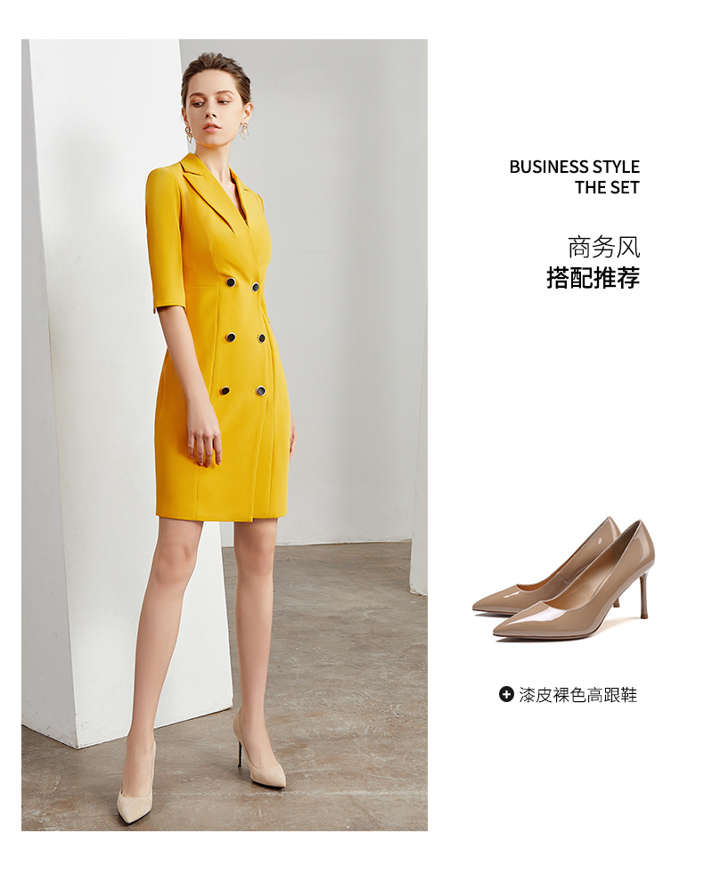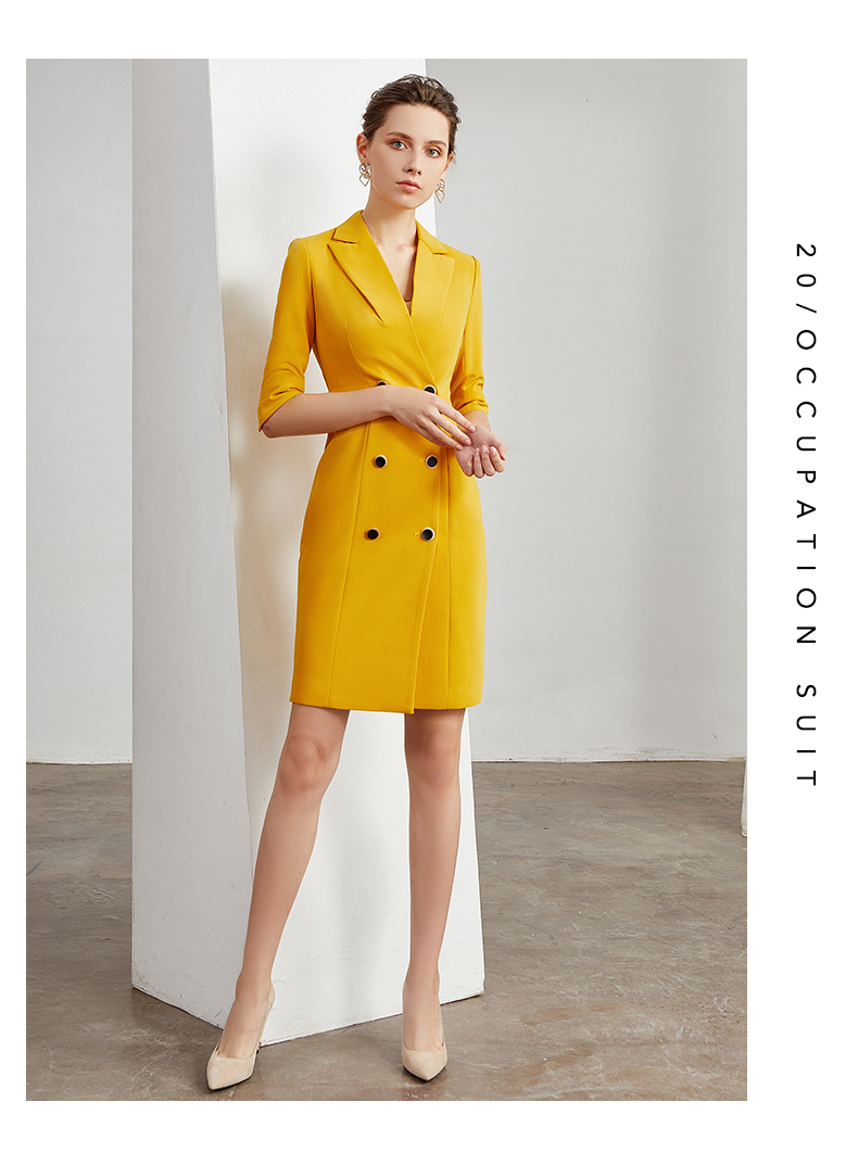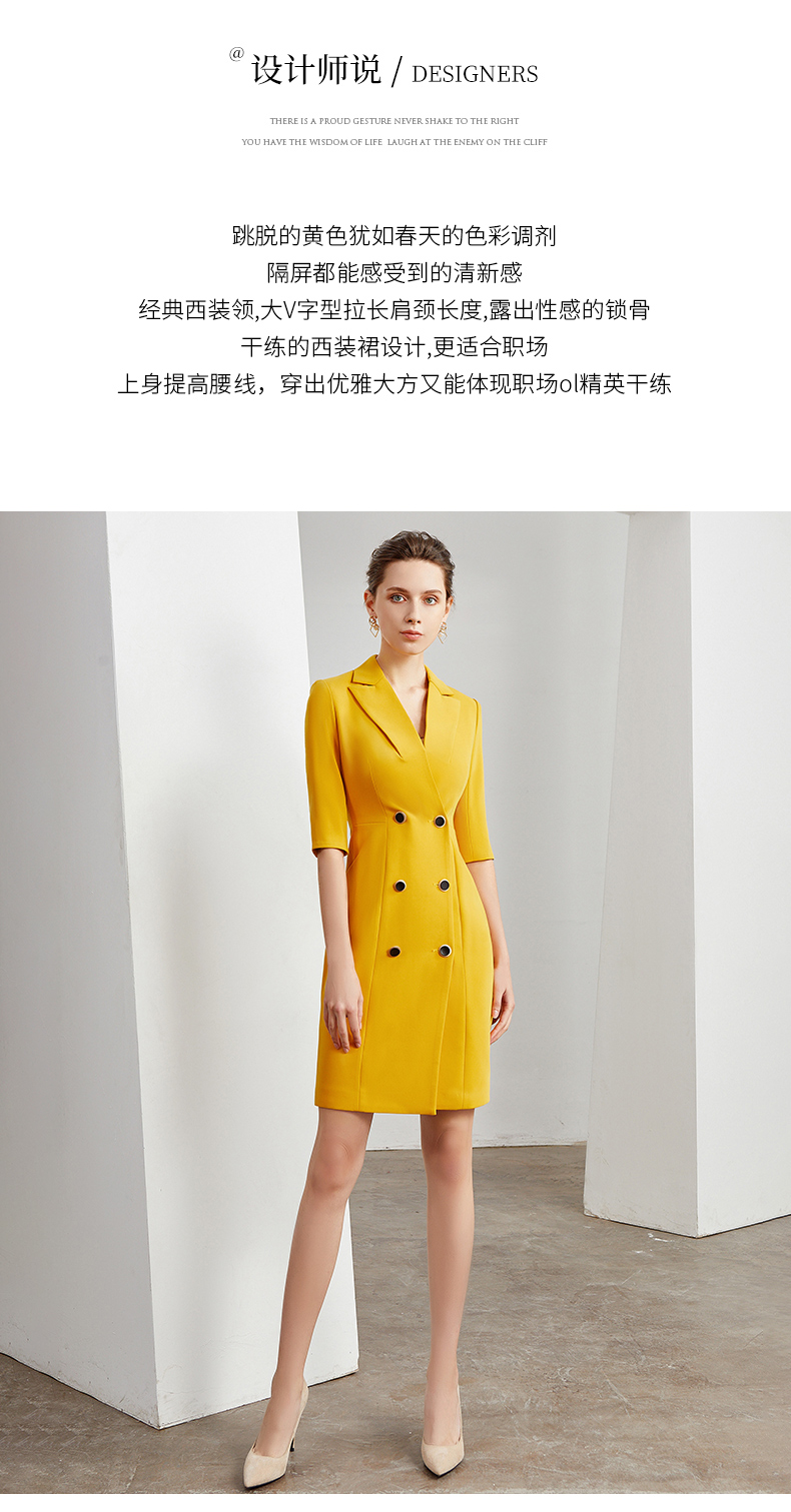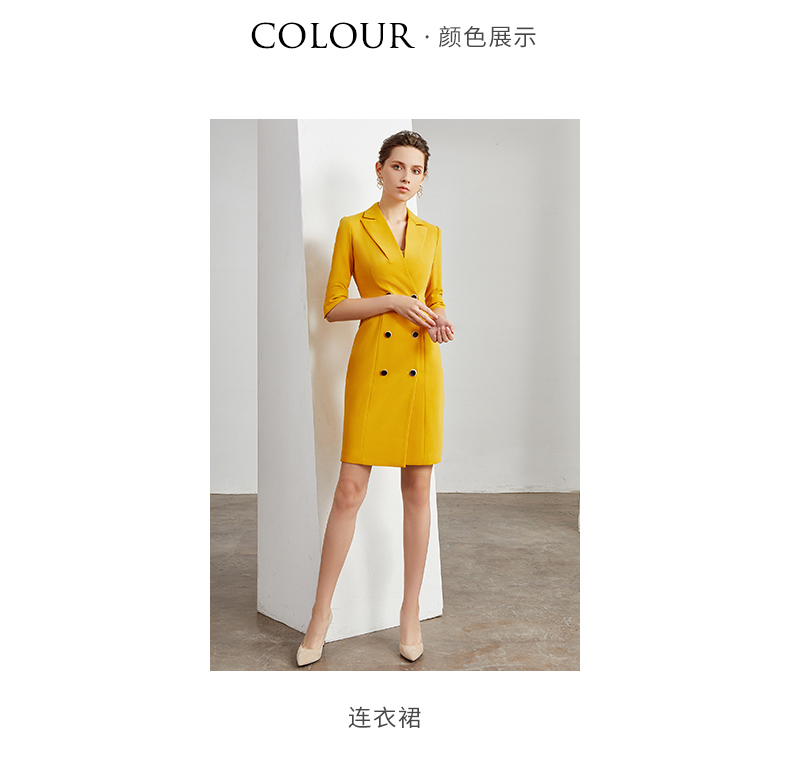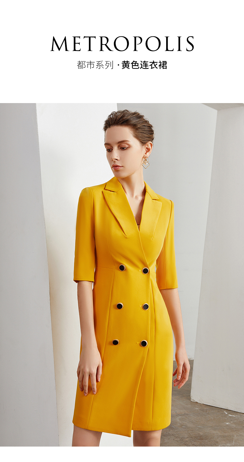 IWY/黄色连衣裙女主持人职业正装时尚气质通勤名媛工作服02Q1
