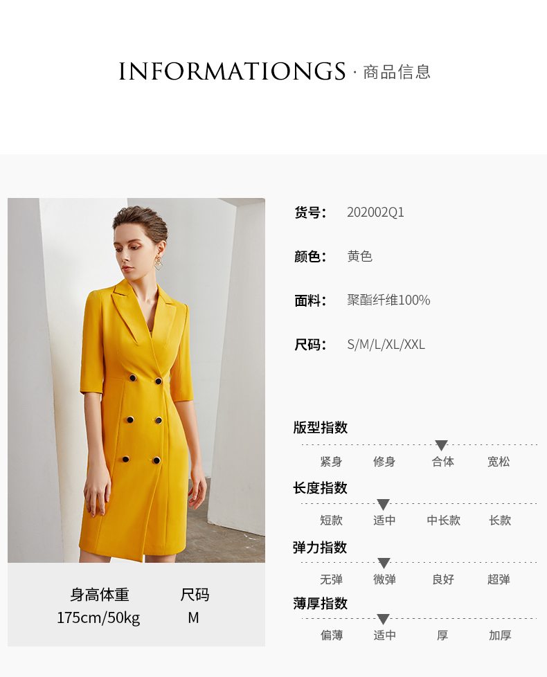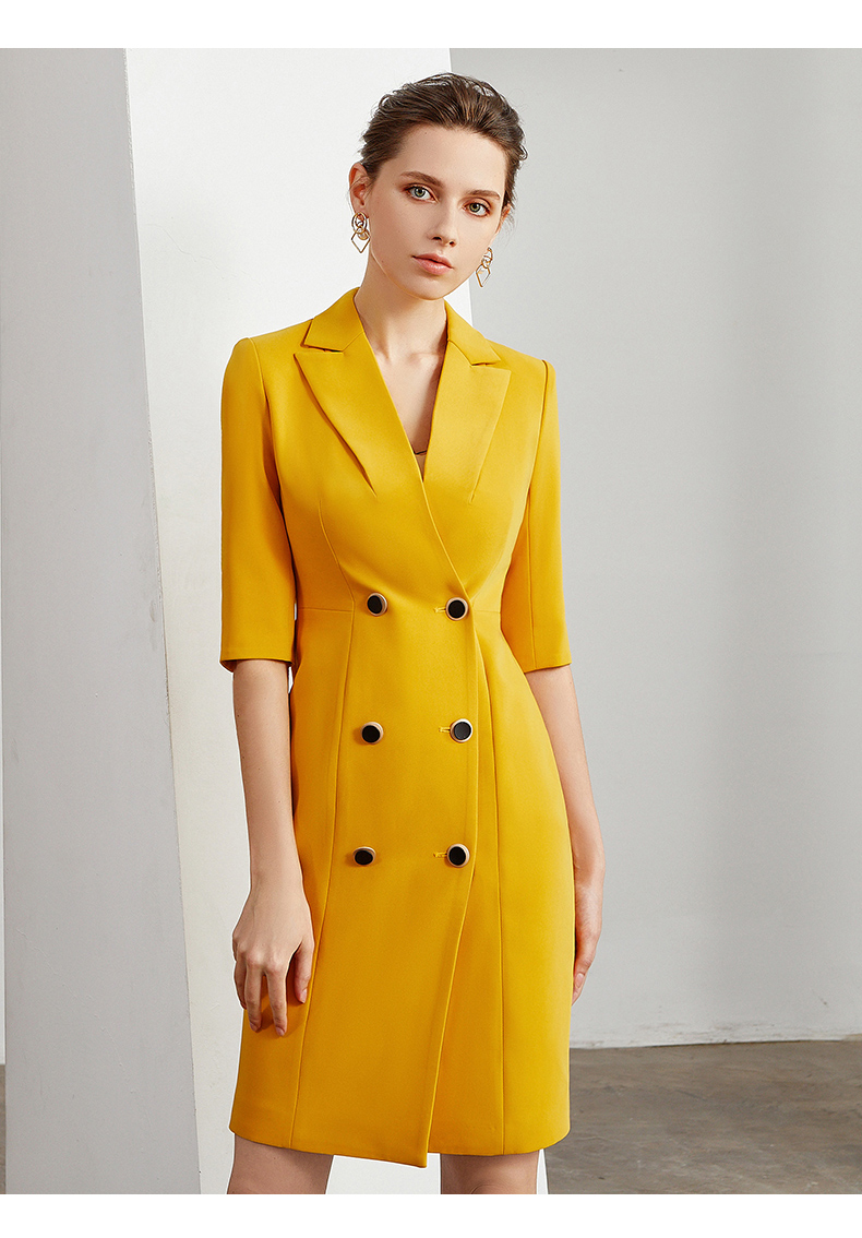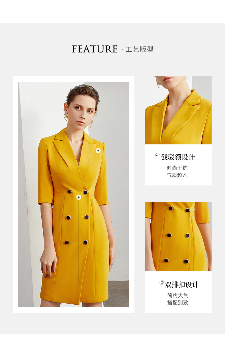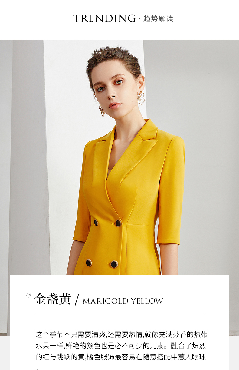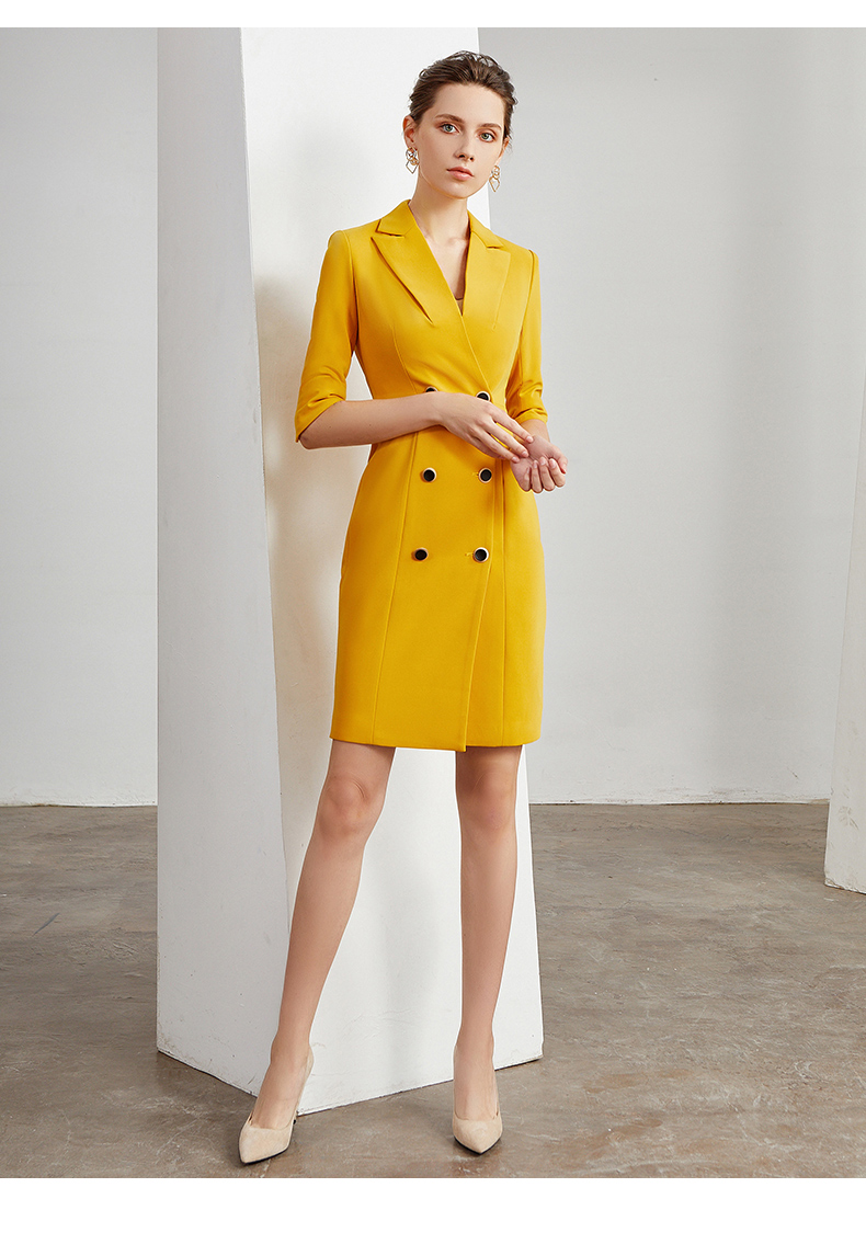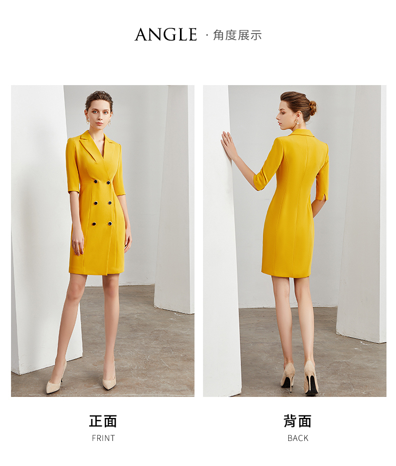 IWY/黄色连衣裙女主持人职业正装时尚气质通勤名媛工作服02Q1