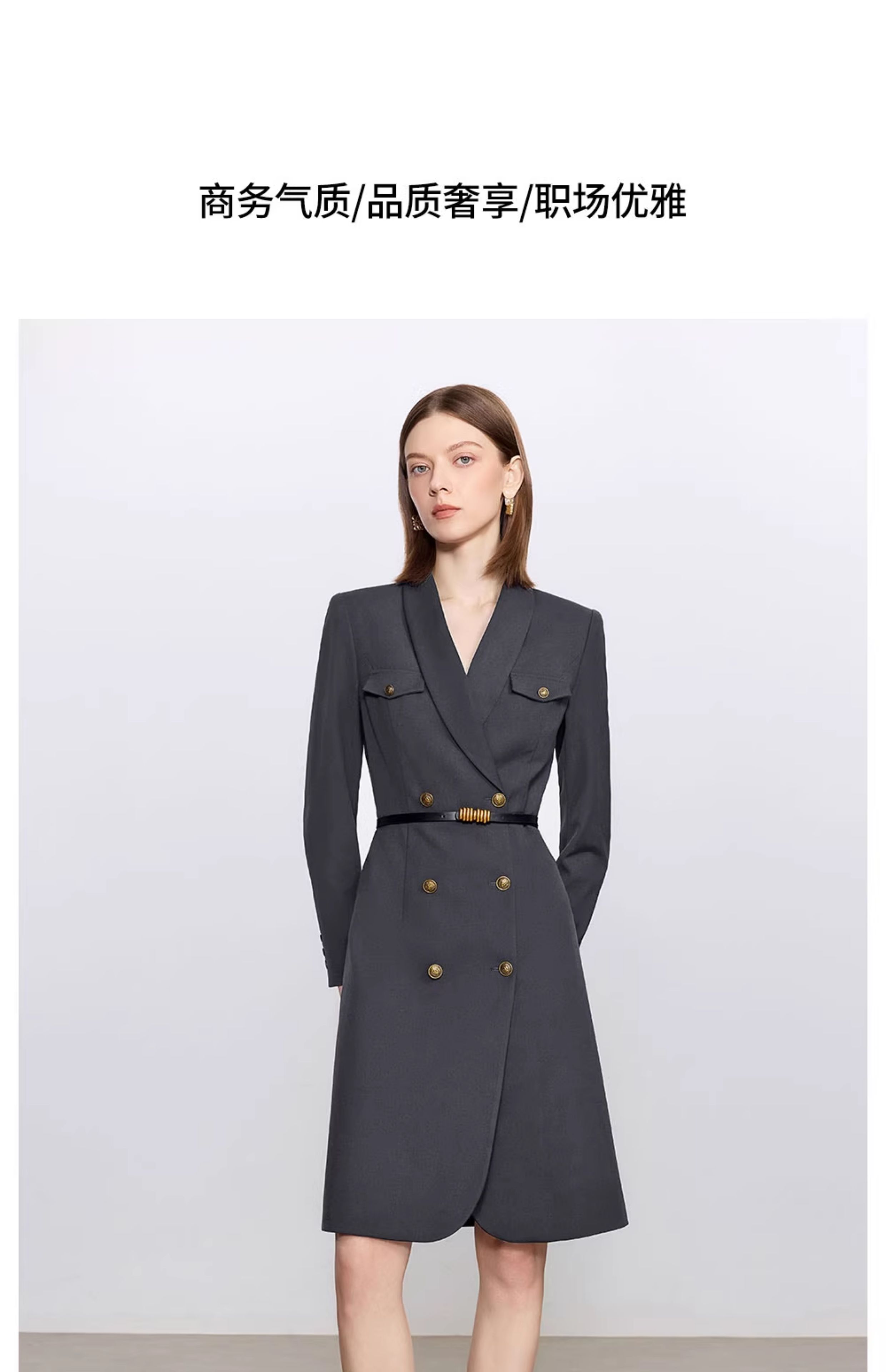 IWY/高级感灰色西装连衣裙女秋冬羊毛总裁职业裙气质干练工作服Q1446