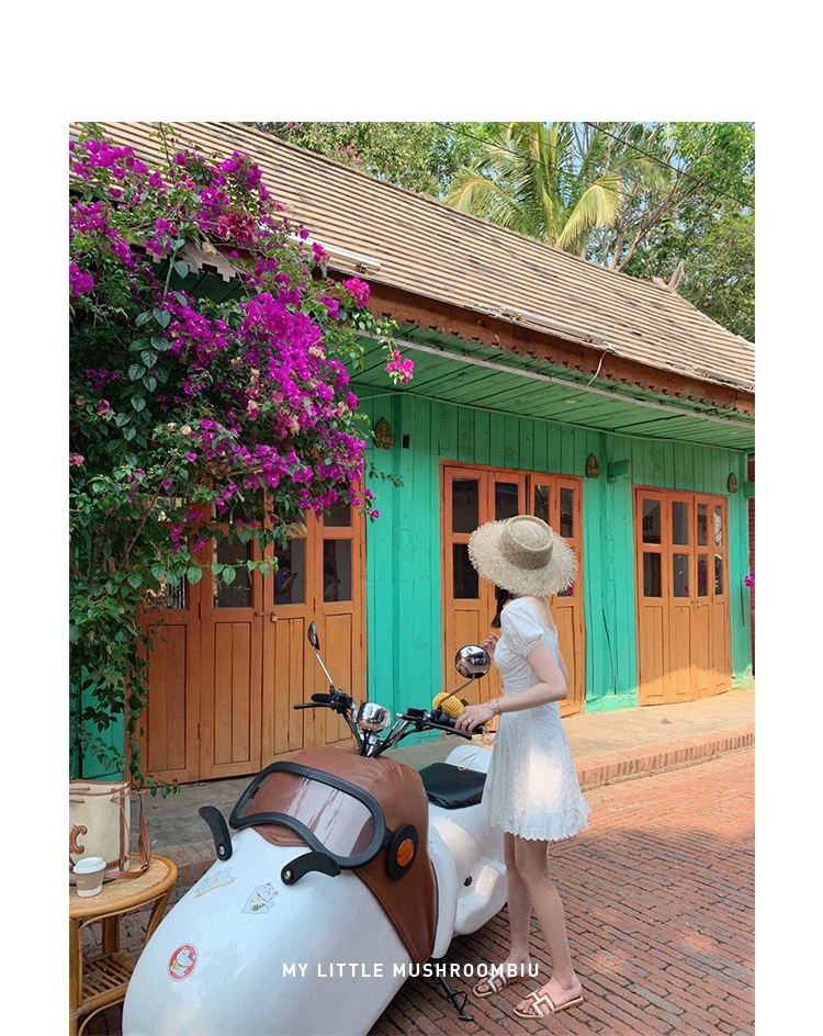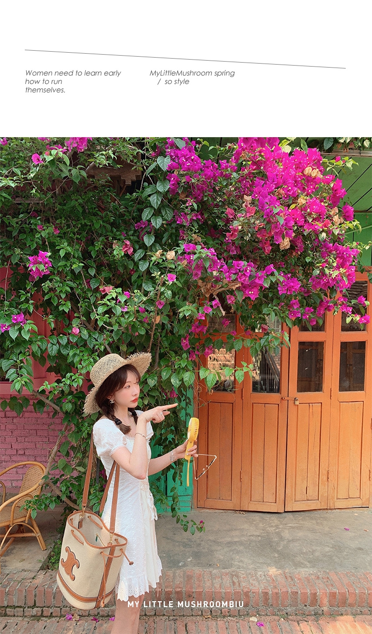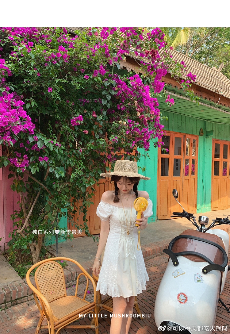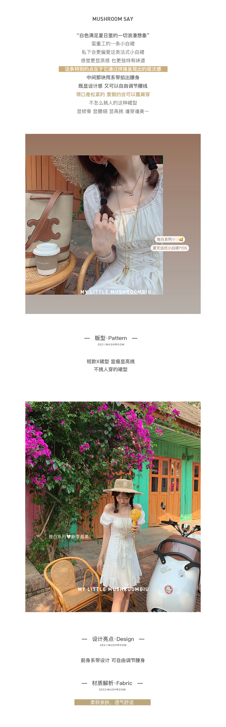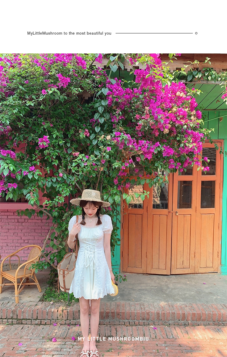金蘑菇菇【独白棉花糖】今夏蕞美法式小白裙仙女裙显瘦显高连衣裙