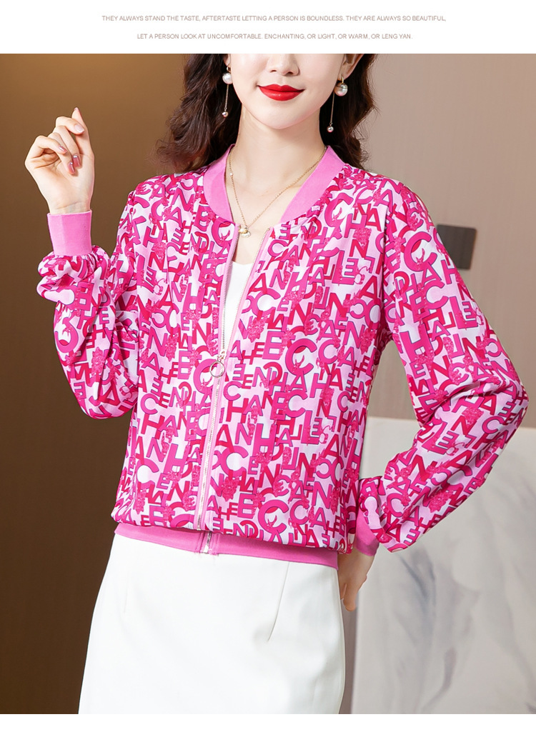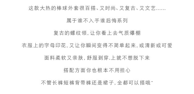 时尚气质,字母印花拼接宽松显瘦上衣小外套KQL-3676