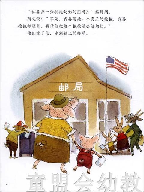 小猪阿文突发奇想,想送一个“很大的抱抱”作为特别的生日礼物送给里之外的奶奶。他和妈妈来到邮局,告诉工作人员倪先生说:“我要寄一个大大的拥抱给我的奶奶”,在妈妈帮助阿文写完奶奶家的地址后,小猪阿文给了倪先生一个大大的拥抱,并嘱咐说:“你把抱抱给邮差的时候,就要像这个抱抱一样大哦!” 然后,借着“抱抱”这份特殊邮件的传递,每个环节的邮差都拥抱了彼此。终于当“抱抱”寄到了奶奶家,奶奶很高兴,决定让邮差再寄一份特殊的礼物给阿文,这个同样特殊的礼物会是什么呢?在抱抱传递的过程中,邮差之间又发生了什么故事呢?