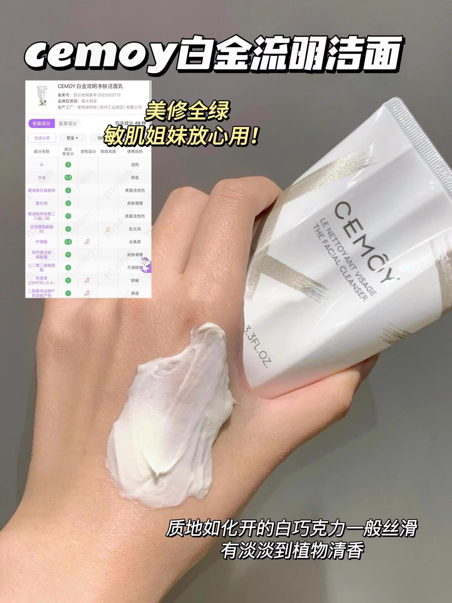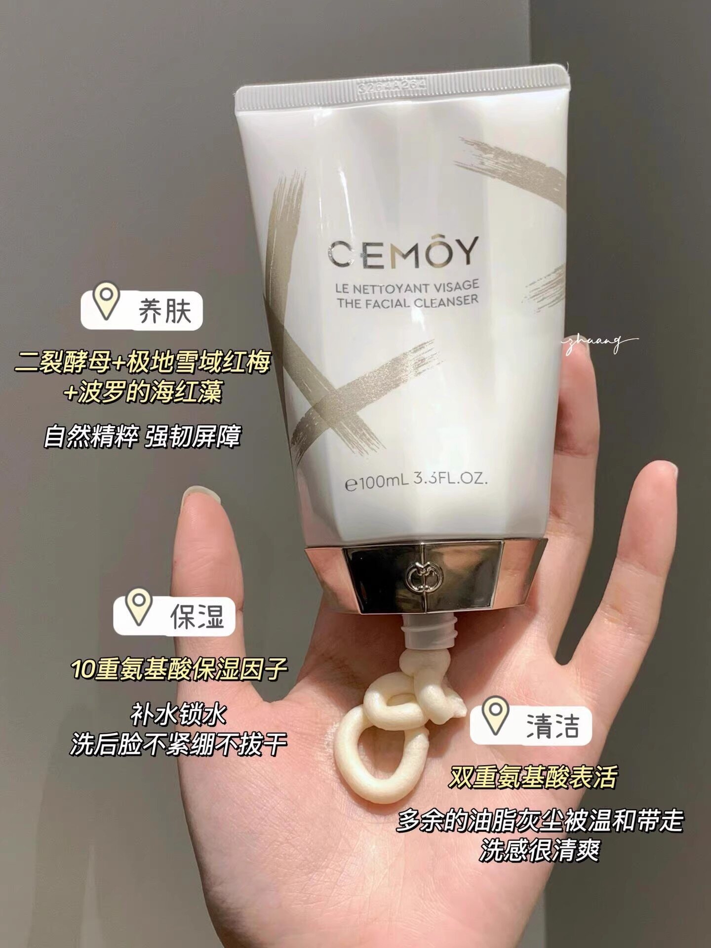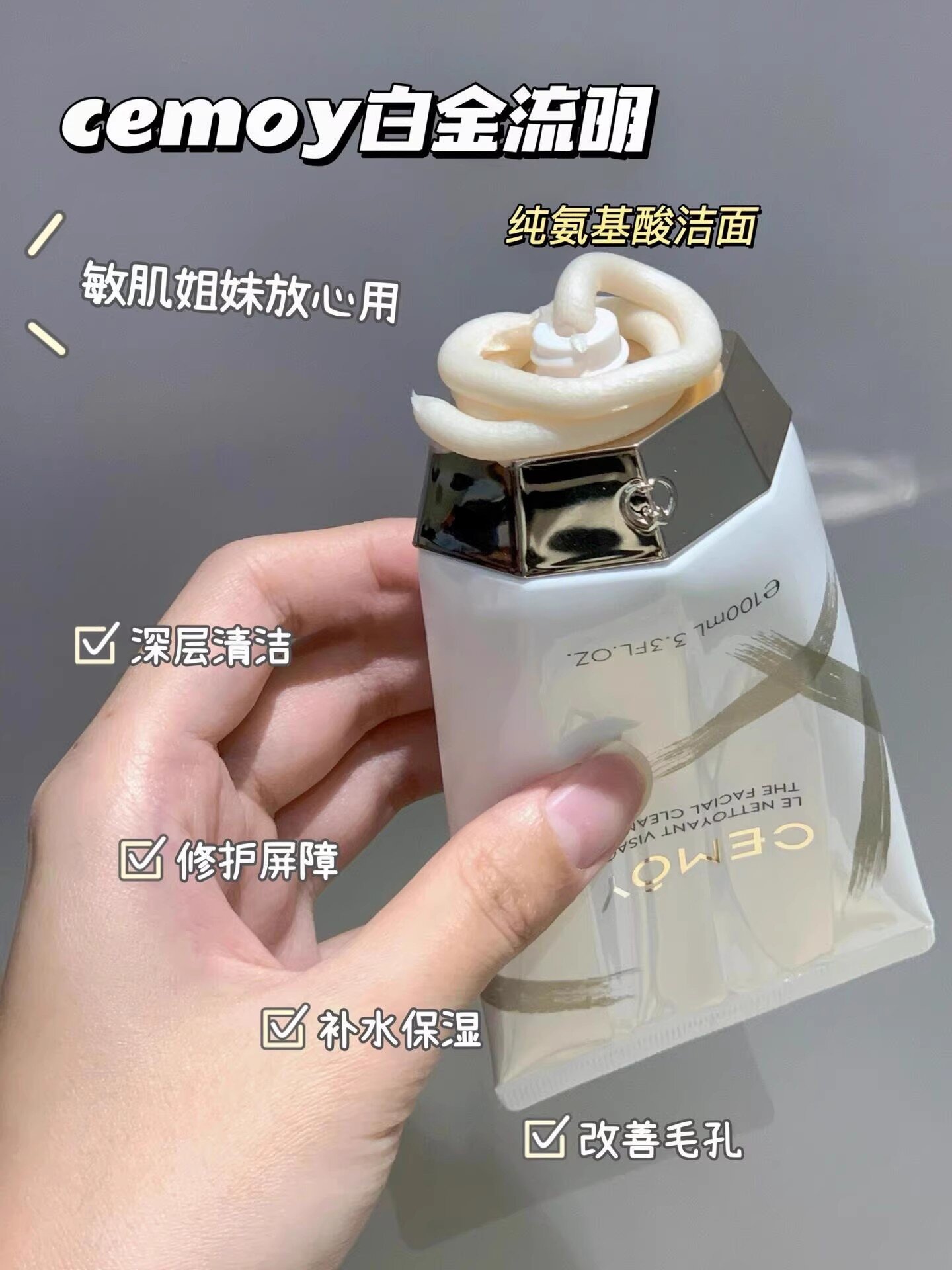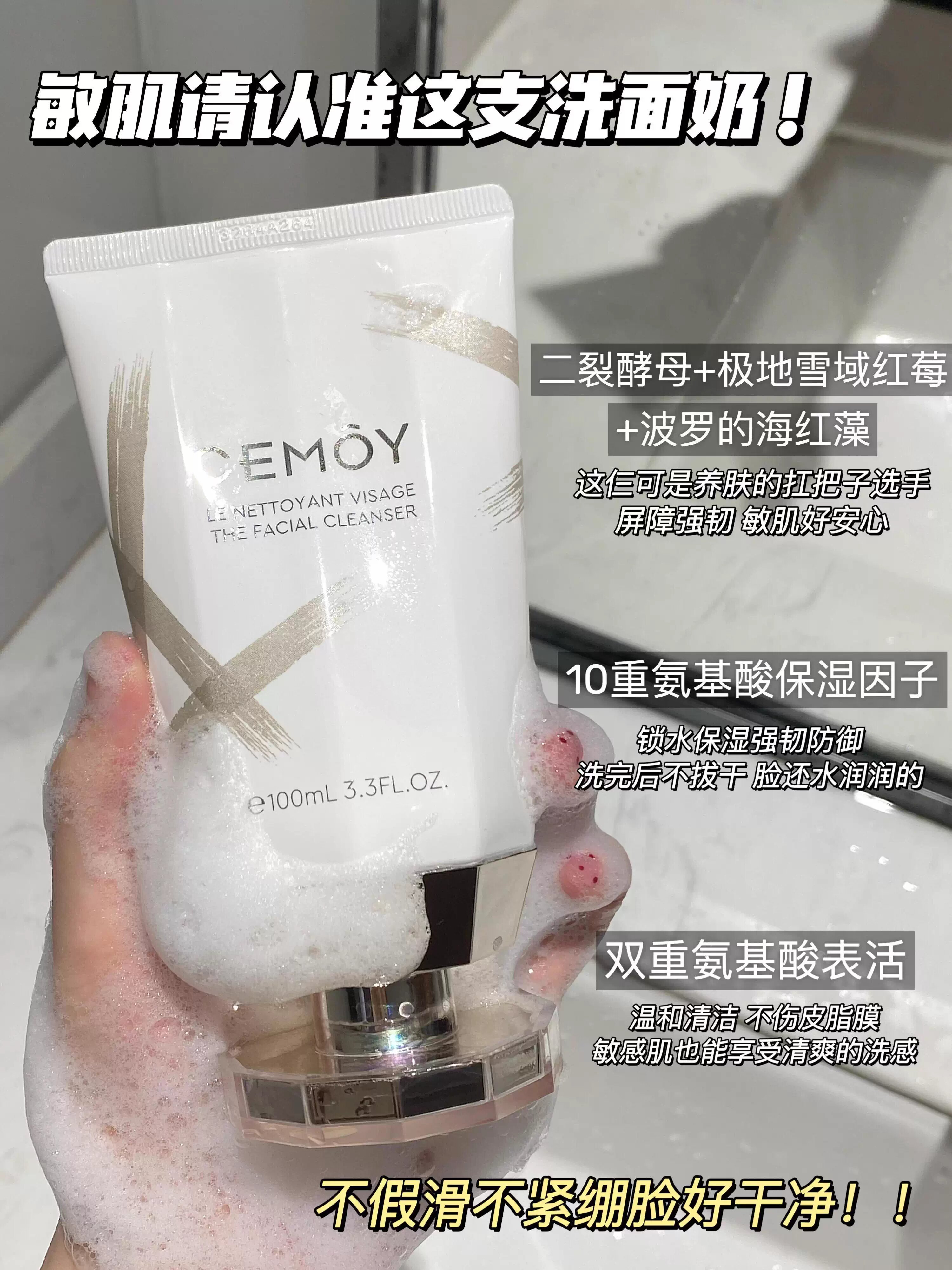 CEMOY澳诗茉白金氨基酸洗面奶 女男洁面乳泡沫绵密