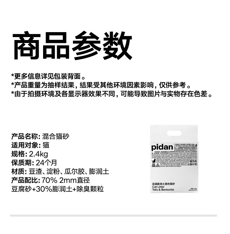 pidan猫砂经典款混合猫砂2.4kg豆腐砂膨润土砂可冲厕所皮蛋猫砂