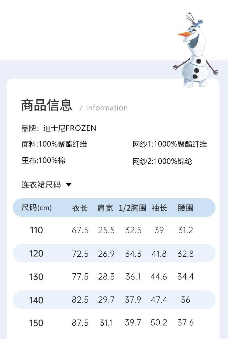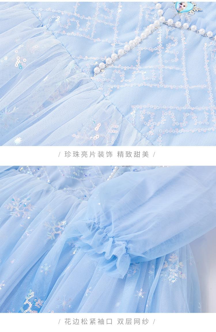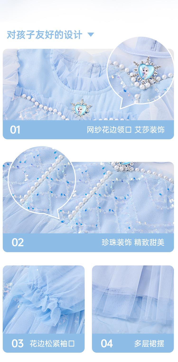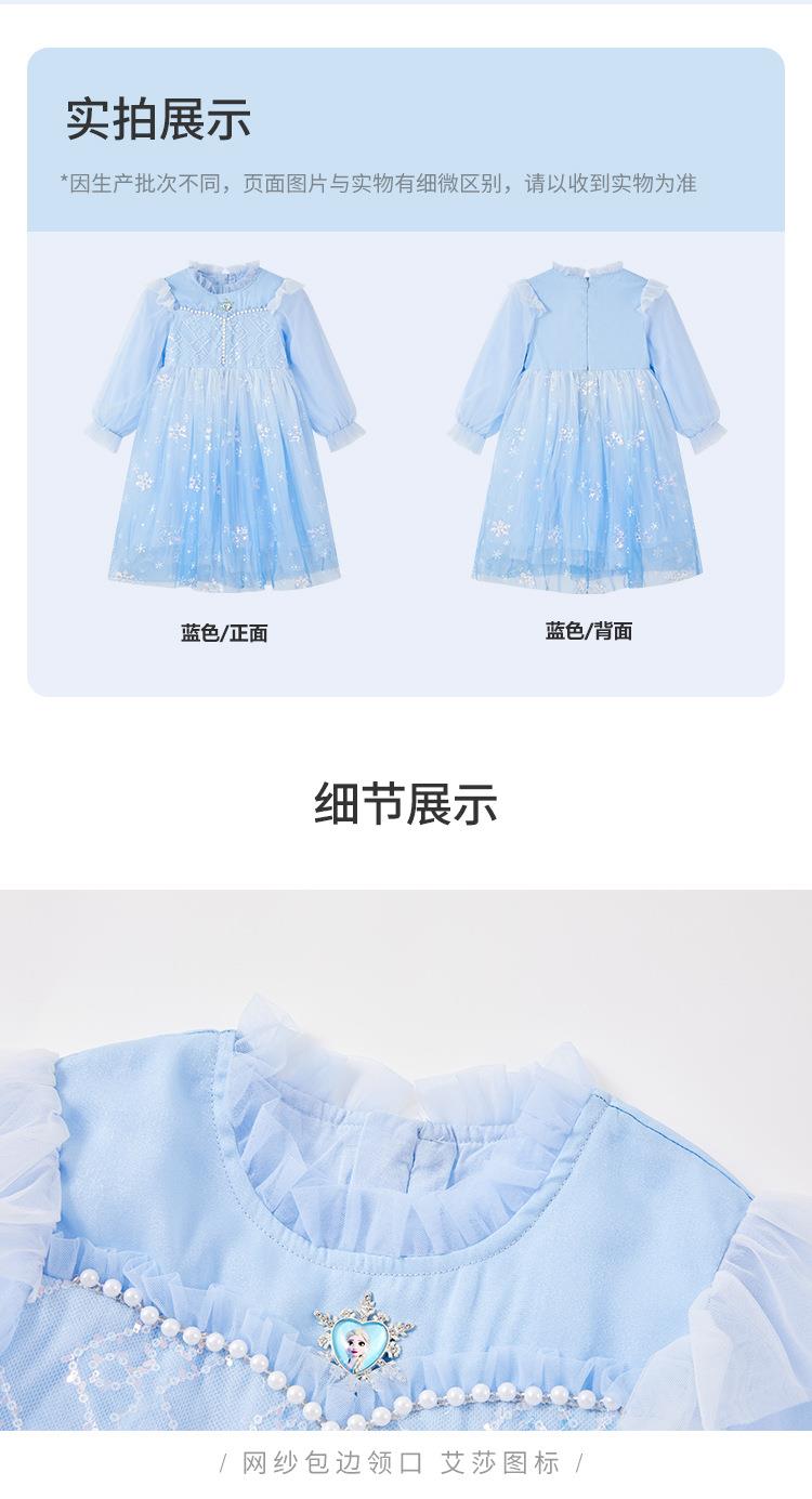 迪士尼童装艾莎公主裙2026春装新品女童连衣裙儿童亮片网纱公主裙