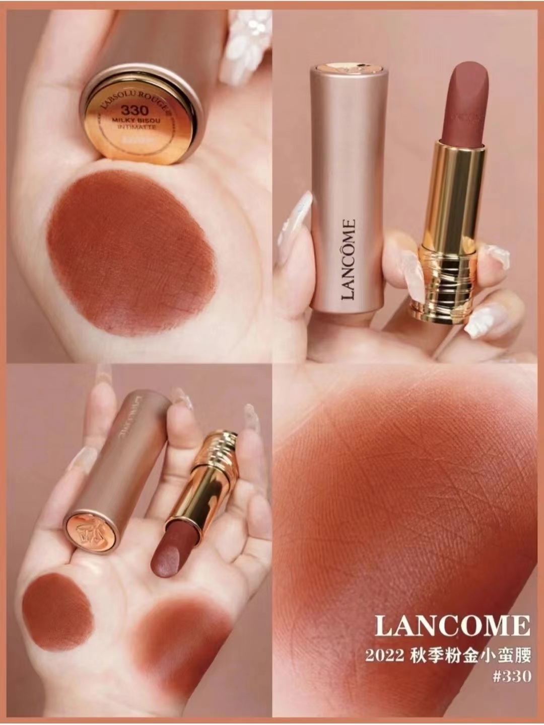 兰蔻新款粉金小蛮腰口红330号羊绒摩卡