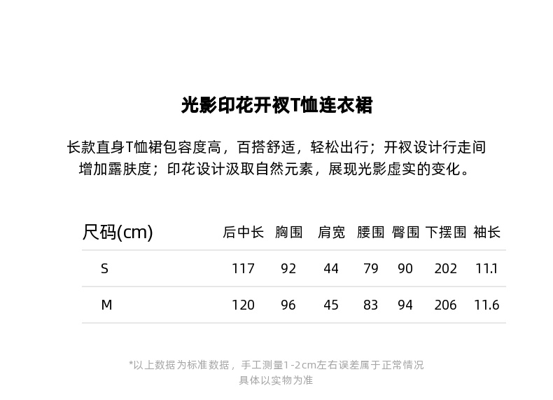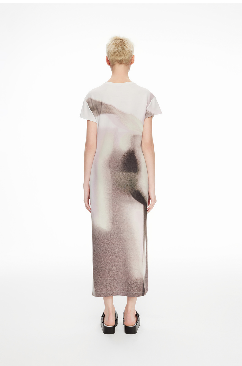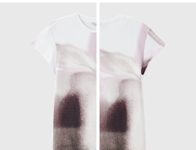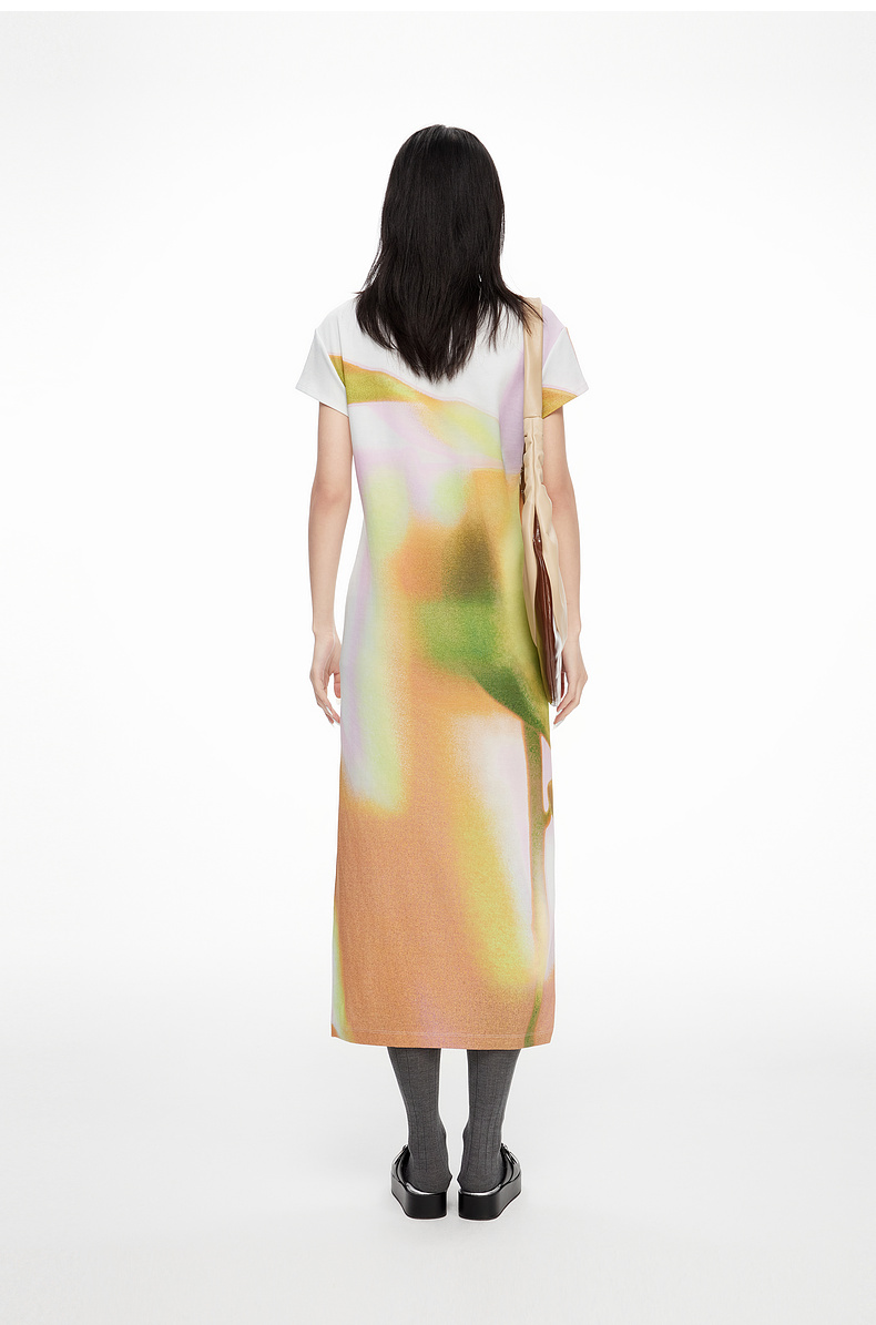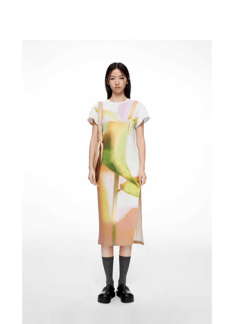 lost in echo2024春夏新品设计师品牌光影印花开衩宽松T恤连衣裙