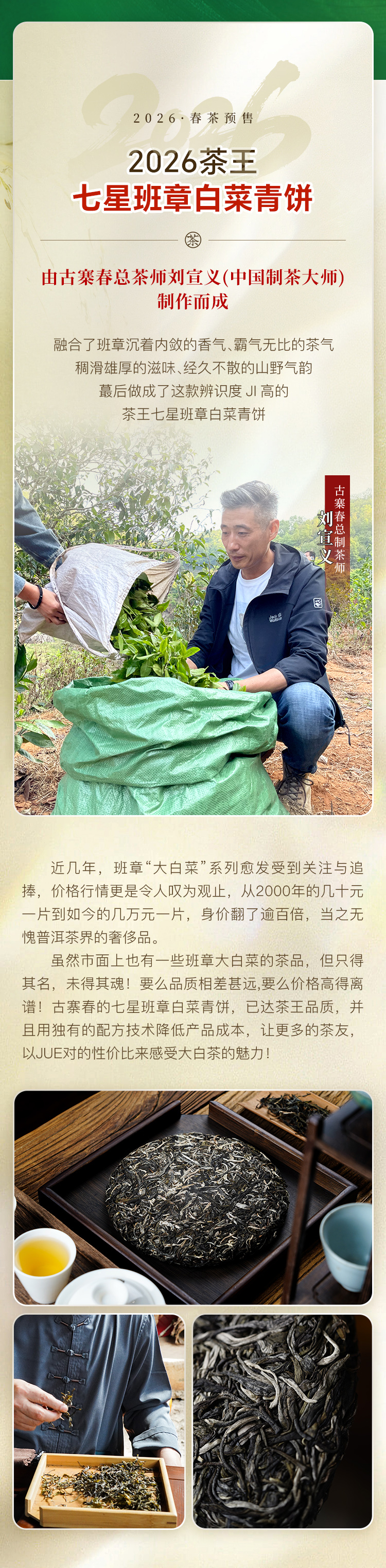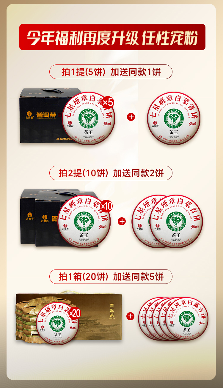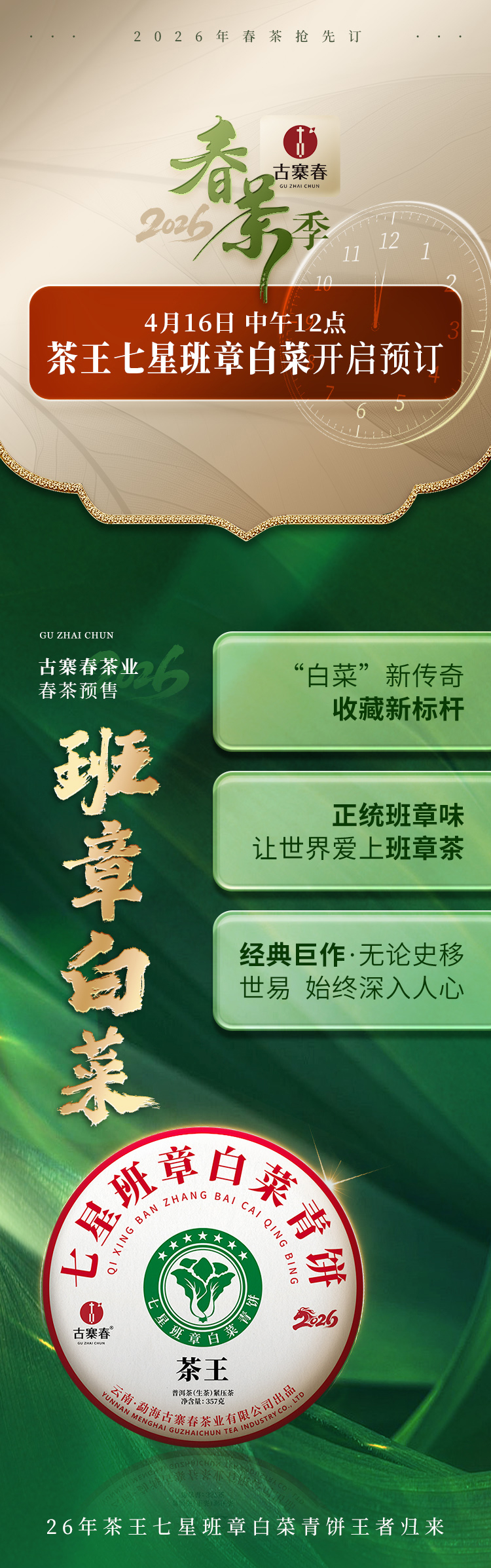 4月16日中午12点【七星茶王白菜青饼】2026年春茶预售正统班章味,让世界爱上班章茶 迷人烟韵,超越千万茶友心中的期盼357克/饼 5饼/提