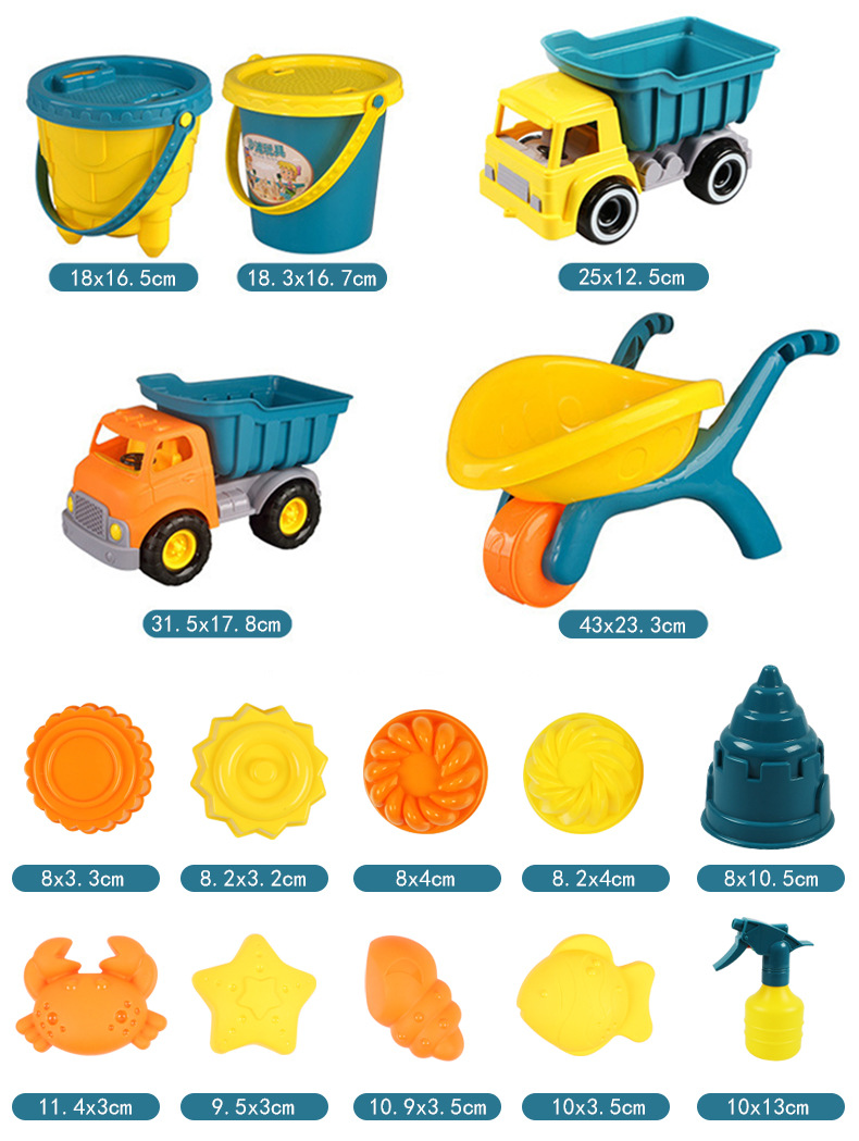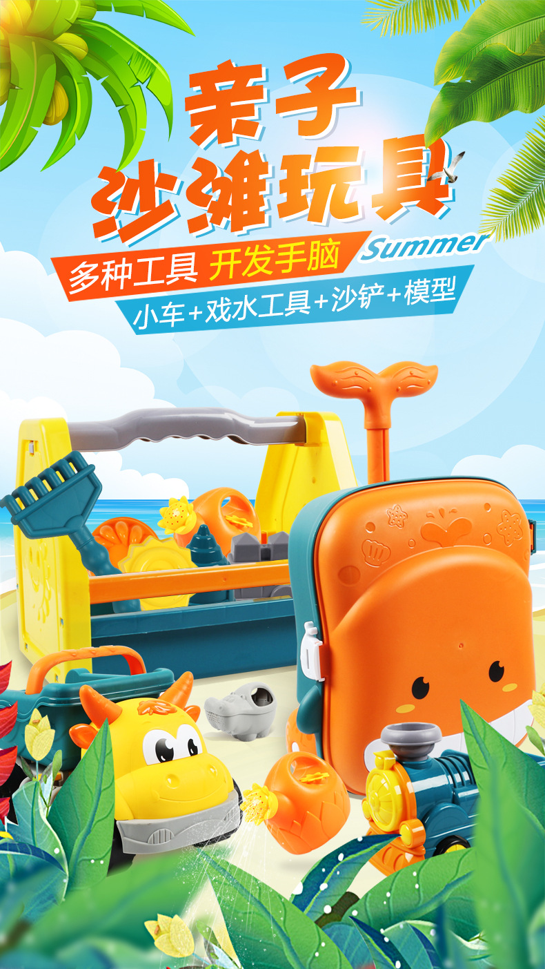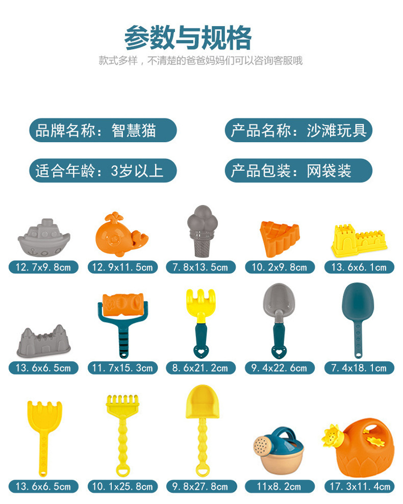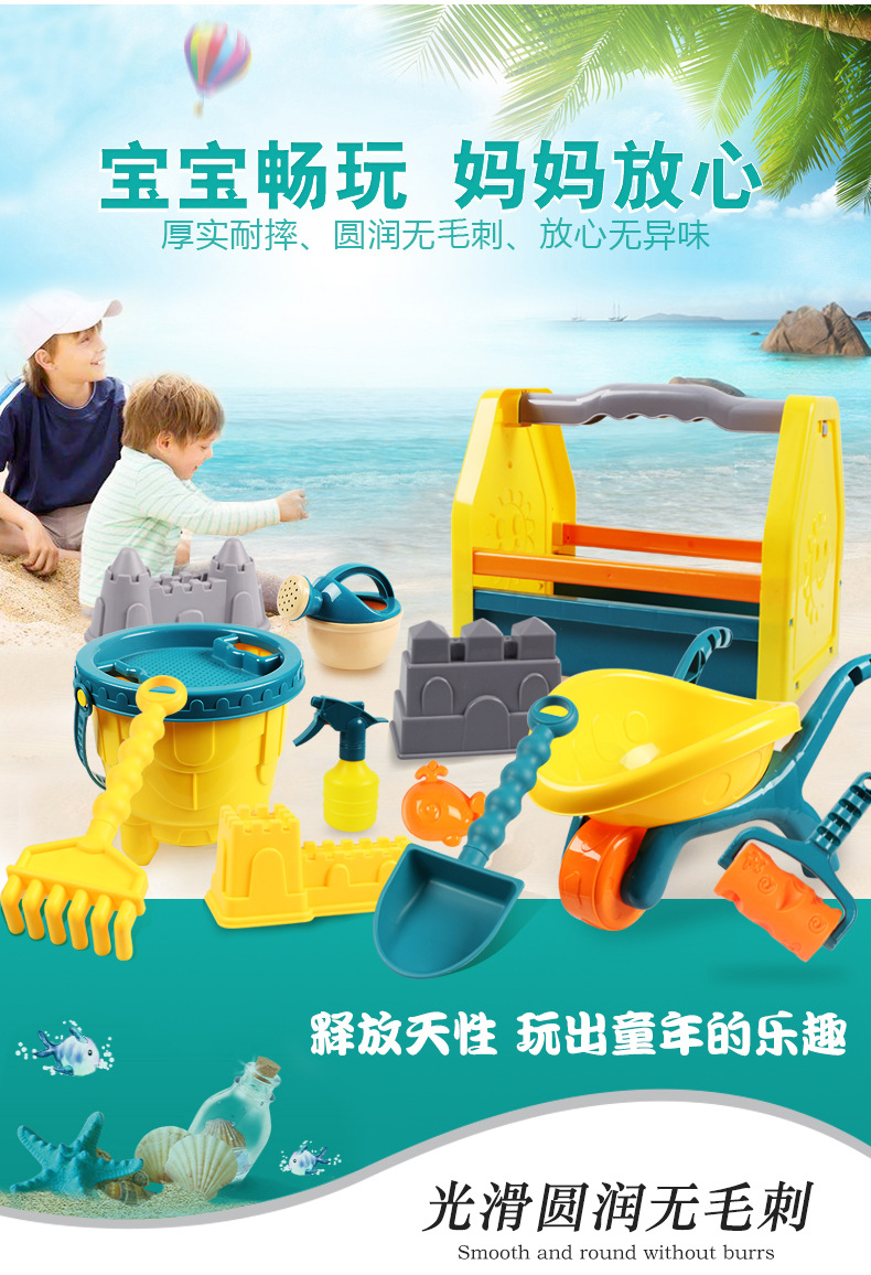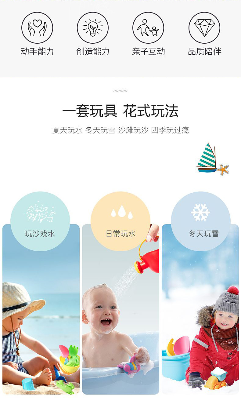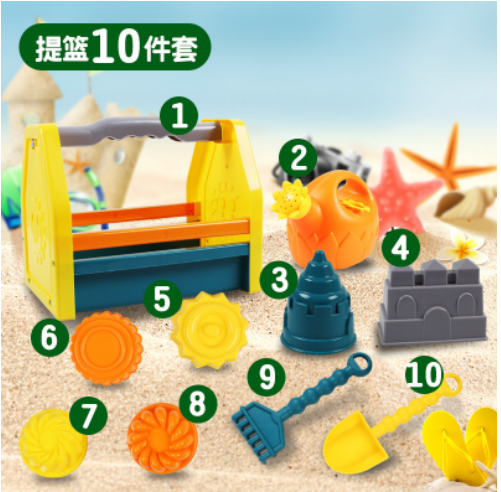 1、亲子沙滩玩具,多种工具,可以开发孩子的设计天赋