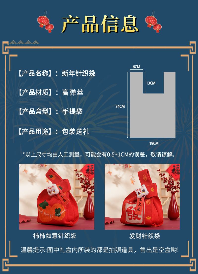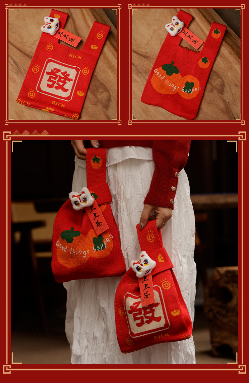【新年针织袋】手腕包蛇年拜年小手提袋饼干糖果礼品袋春节实用针织袋子。ry 商品图5