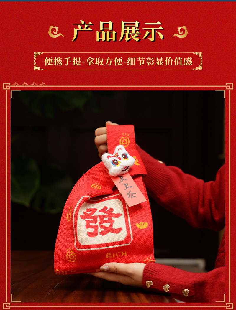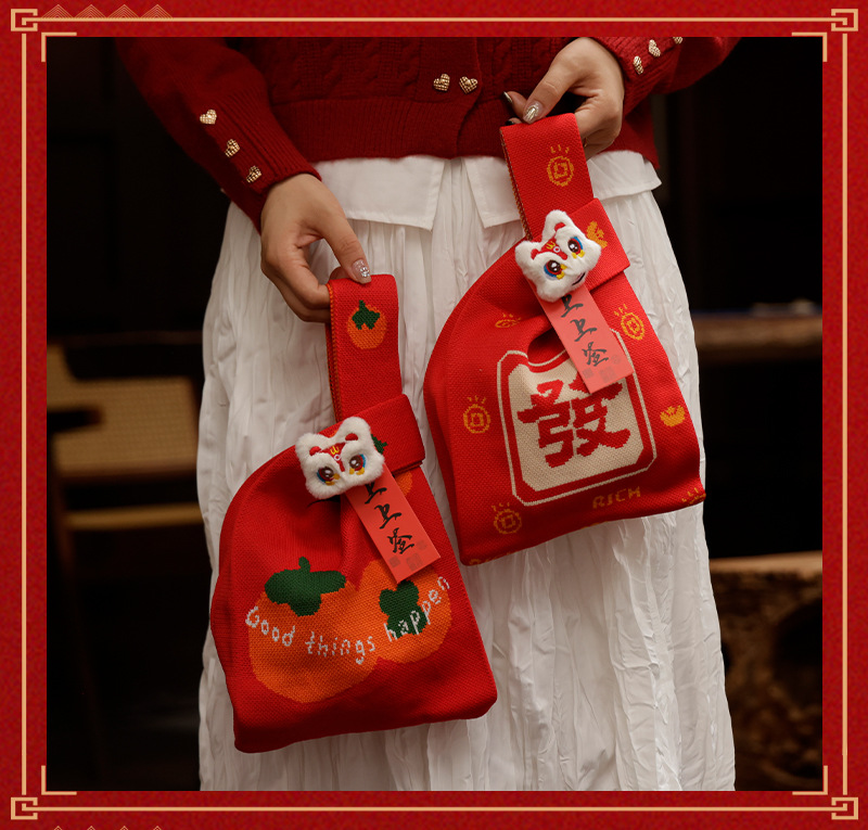 【新年针织袋】手腕包蛇年拜年小手提袋饼干糖果礼品袋春节实用针织袋子。ry 商品图2