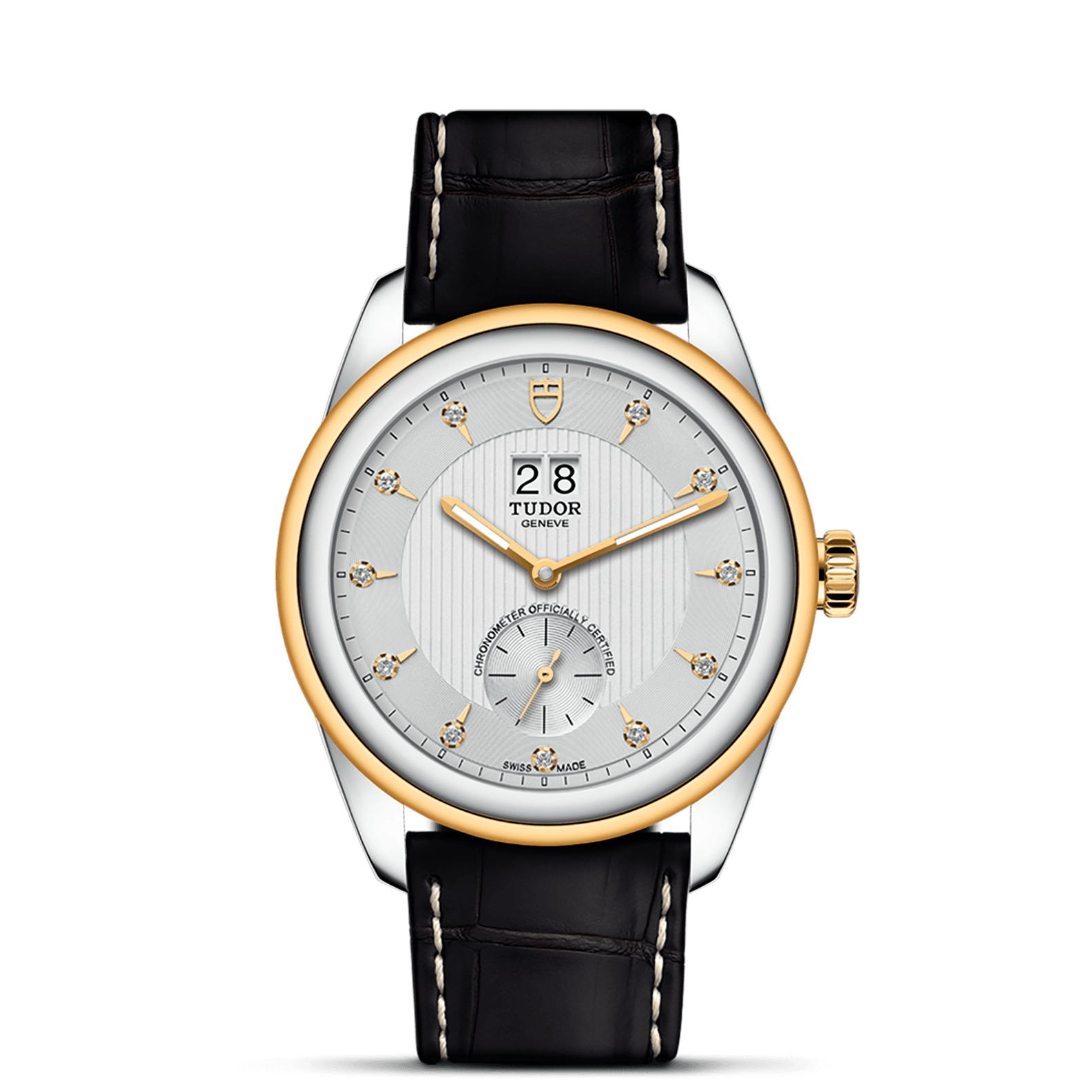 旋入式上链錶冠,饰以帝舵表标志;精钢覆有0.1毫米18K黄金薄层