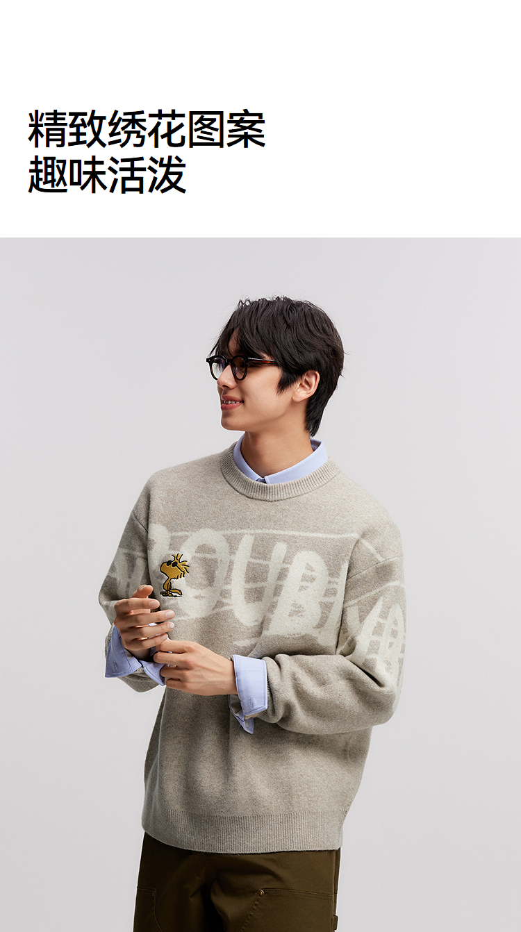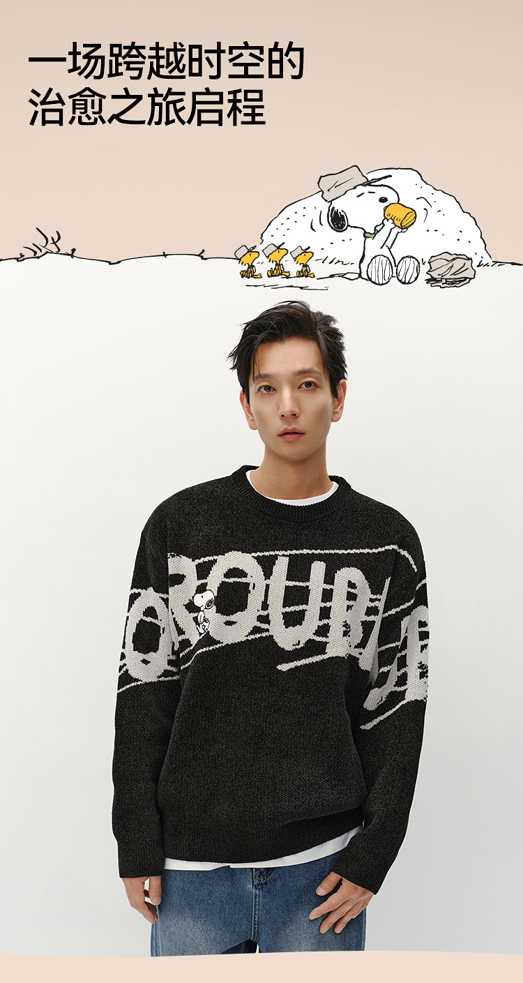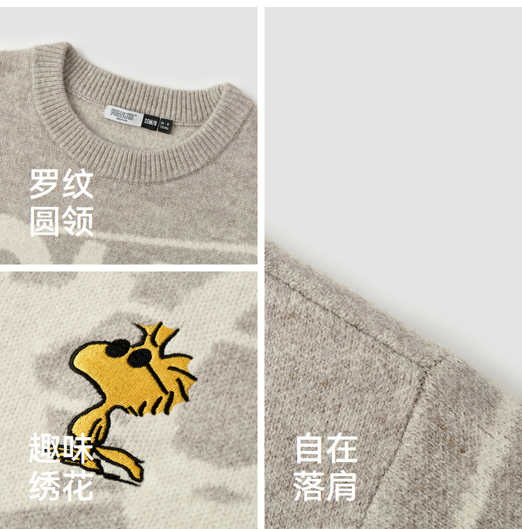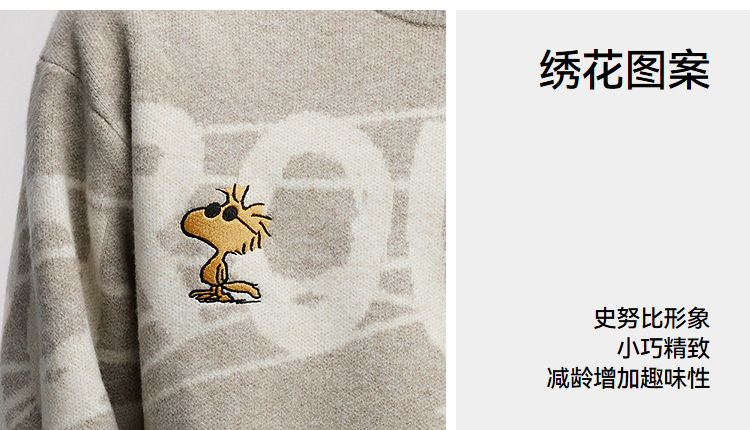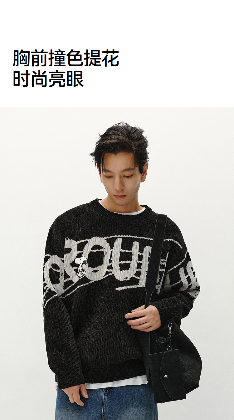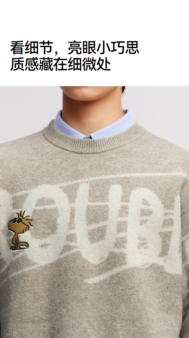 森马史努比系列毛衫男冬提花绣花针织衫情侣宽松套头毛衣内搭外穿