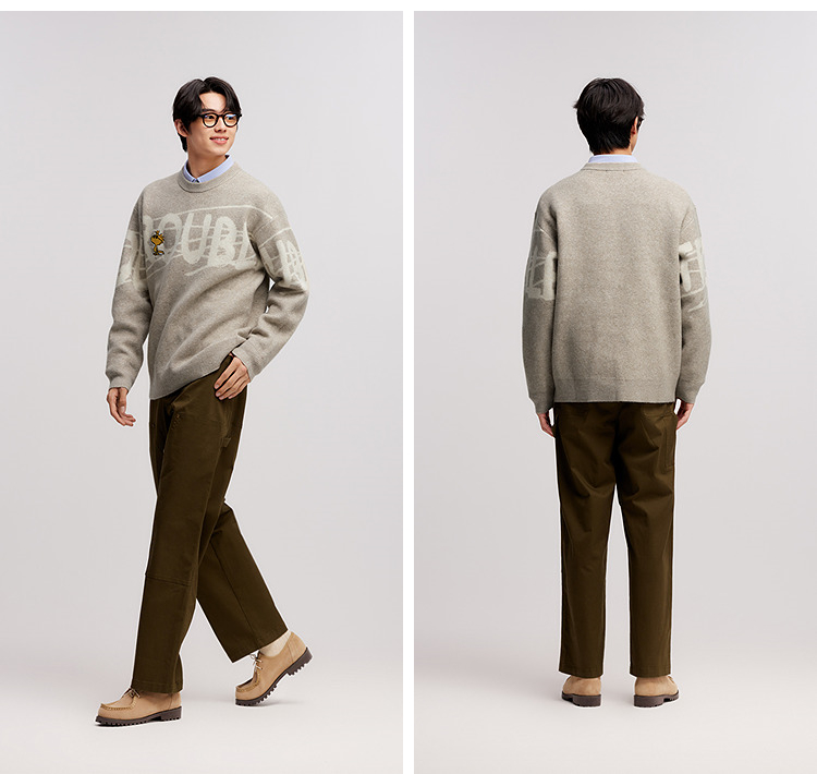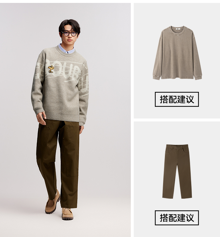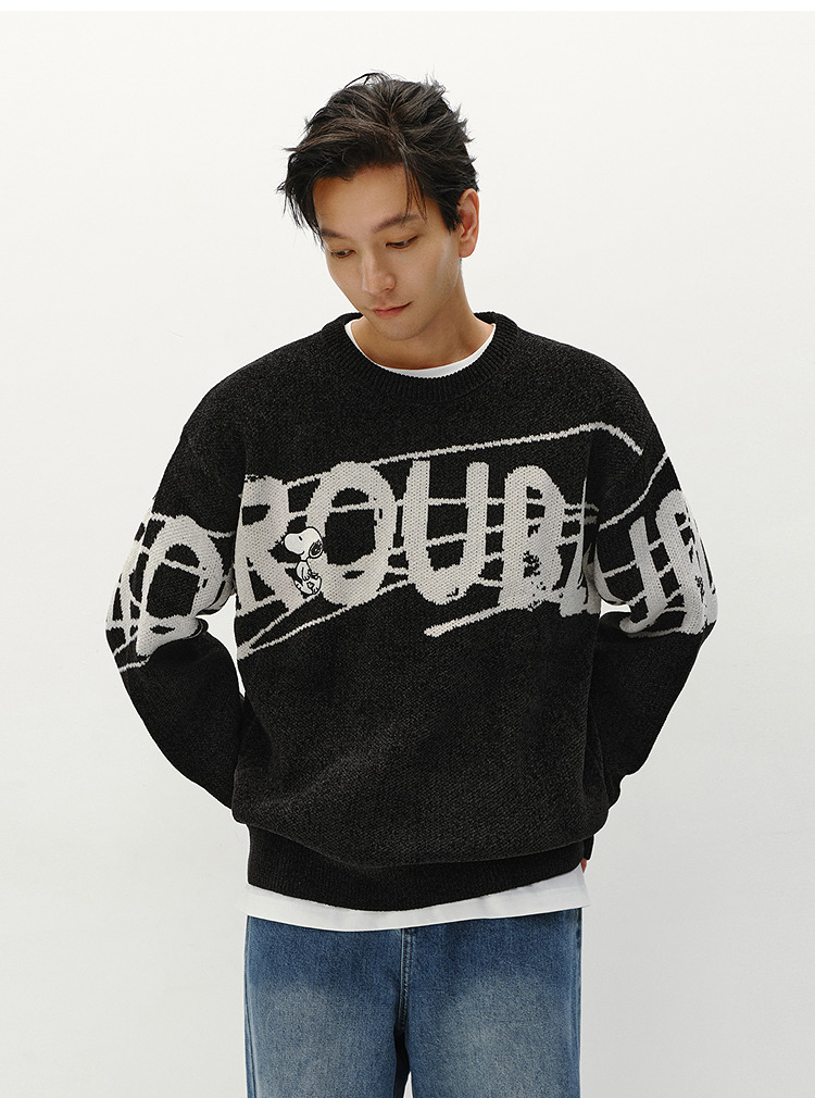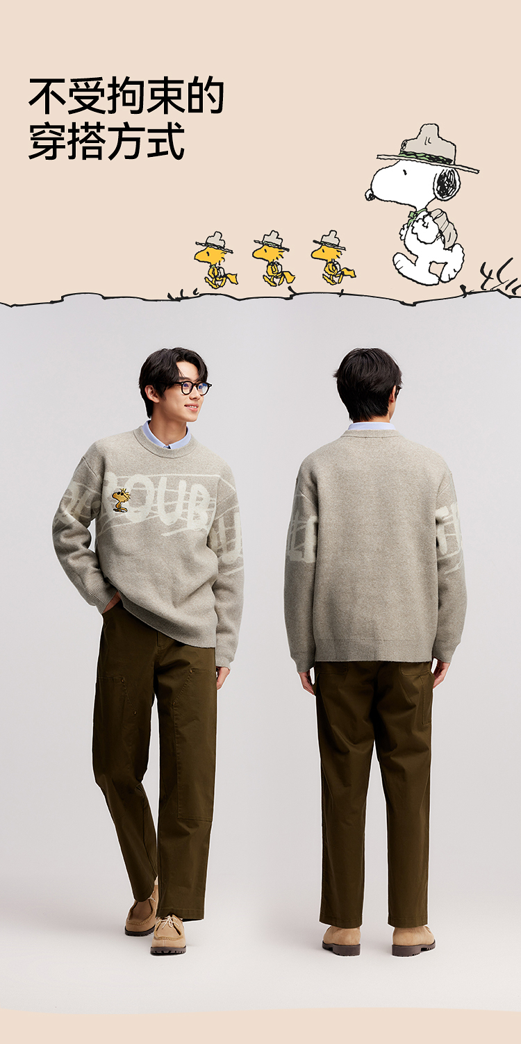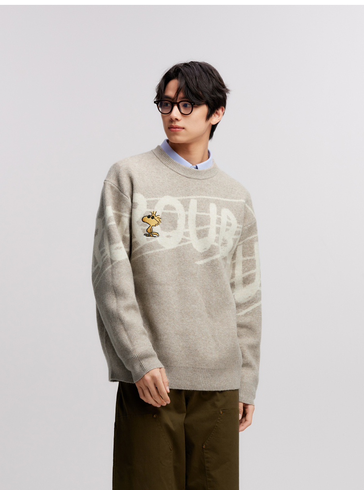 森马史努比系列毛衫男冬提花绣花针织衫情侣宽松套头毛衣内搭外穿