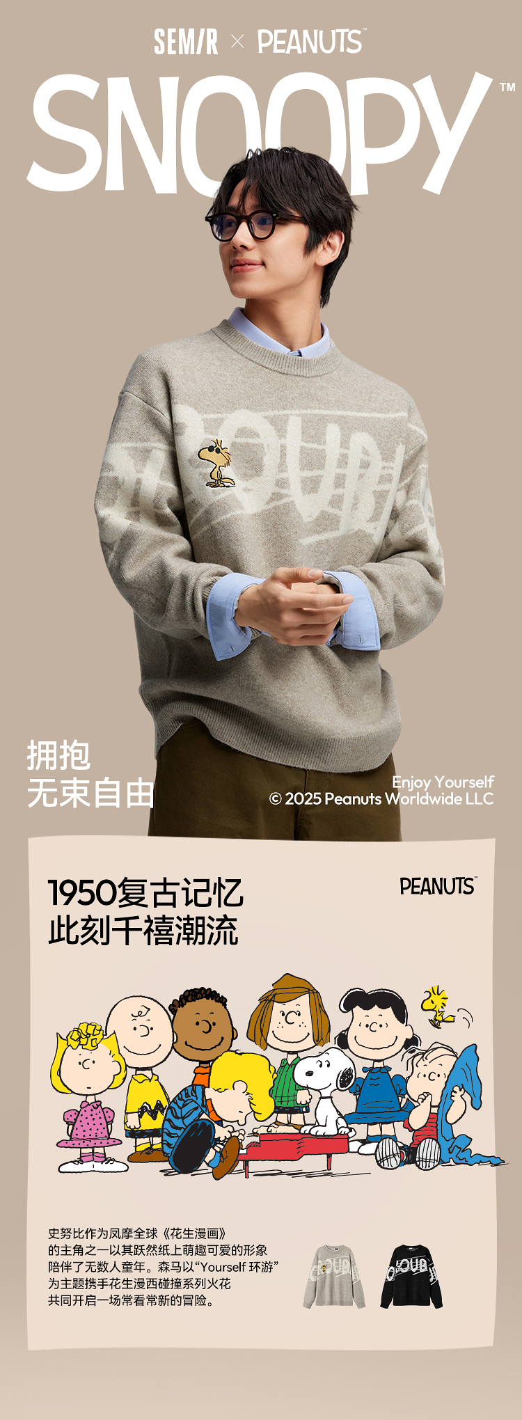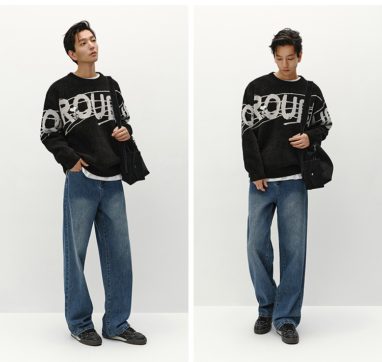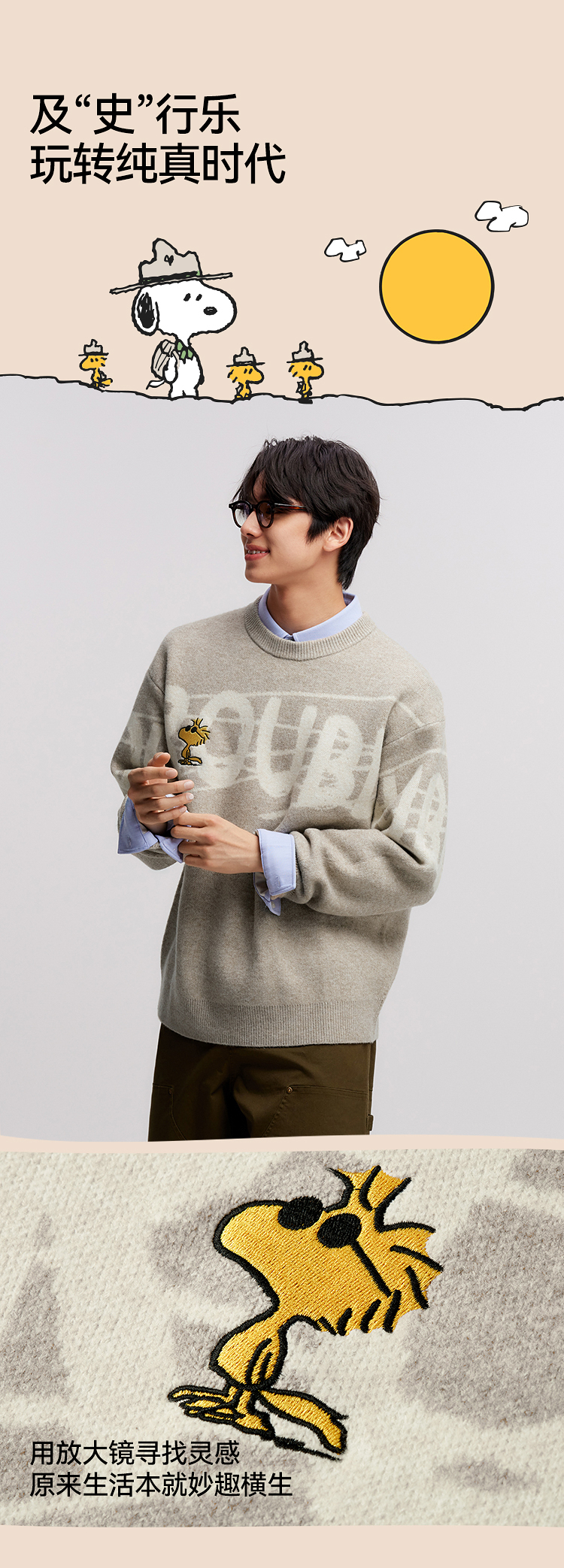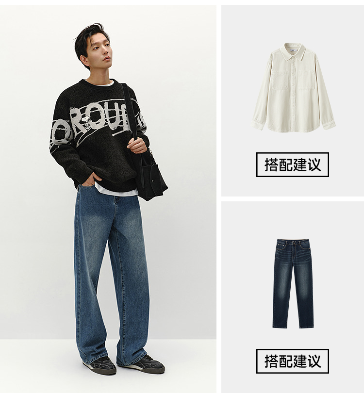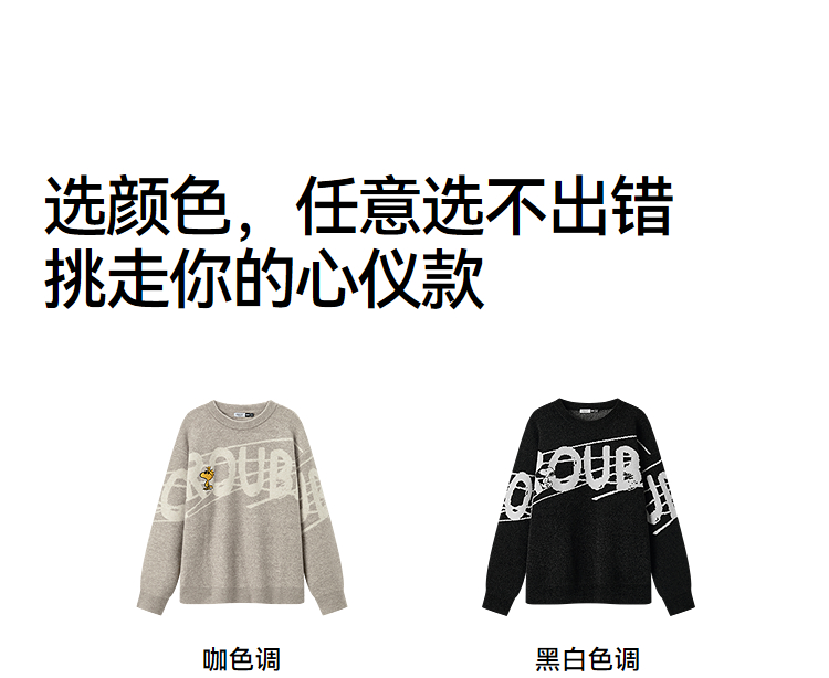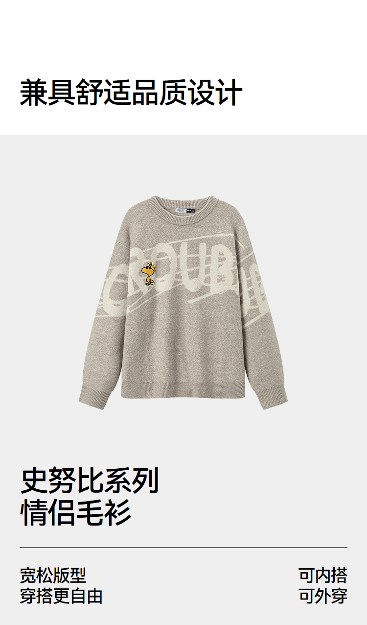 森马史努比系列毛衫男冬提花绣花针织衫情侣宽松套头毛衣内搭外穿