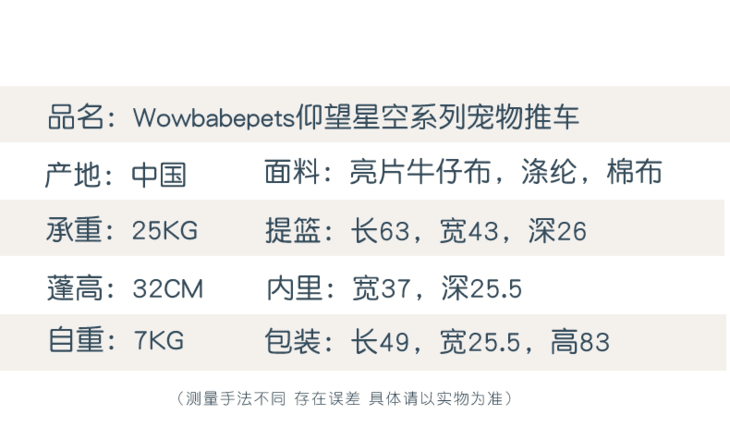Wowbabepets仰望星空轻便可折叠提篮分离宠物猫狗推车中大型包邮