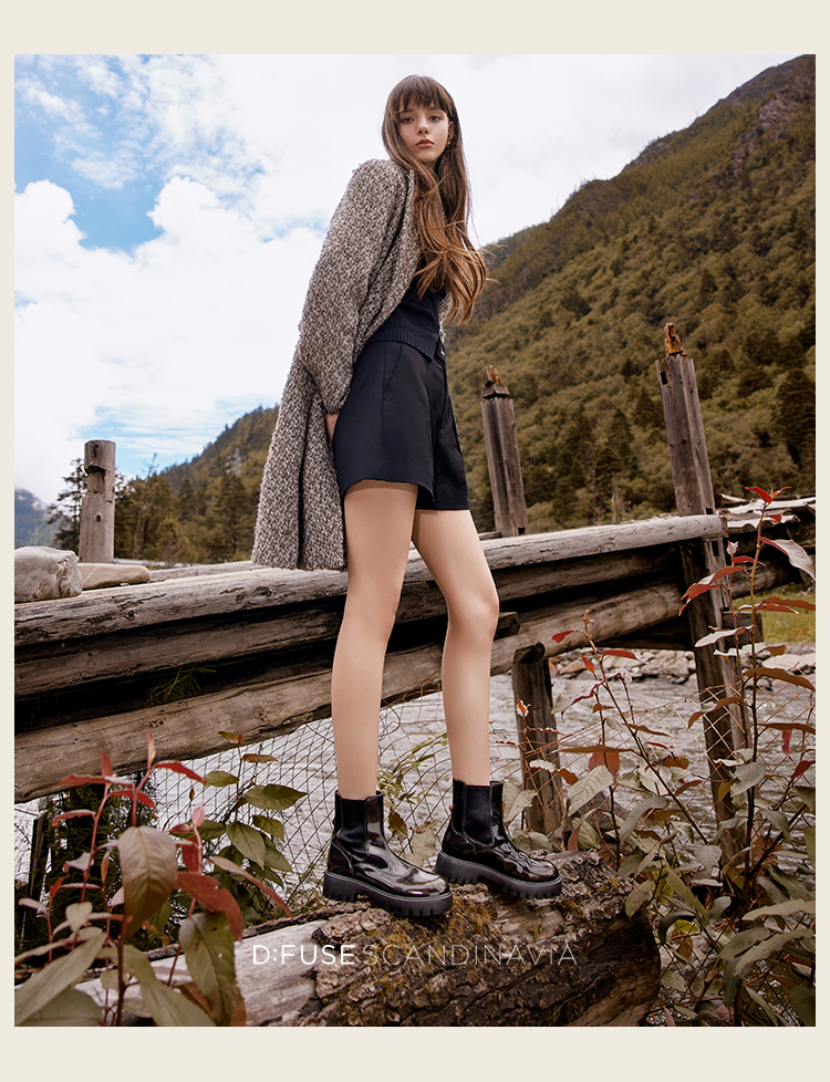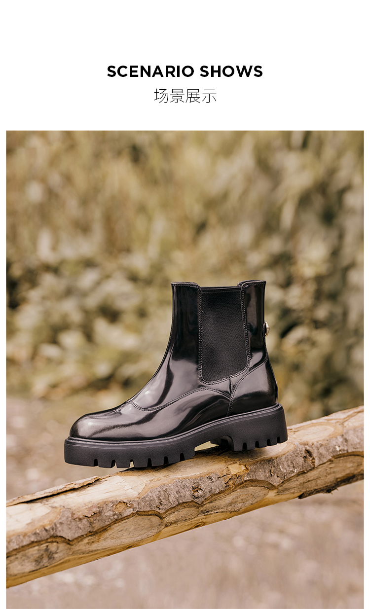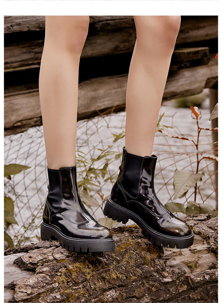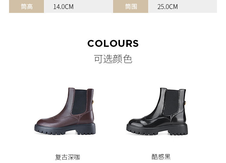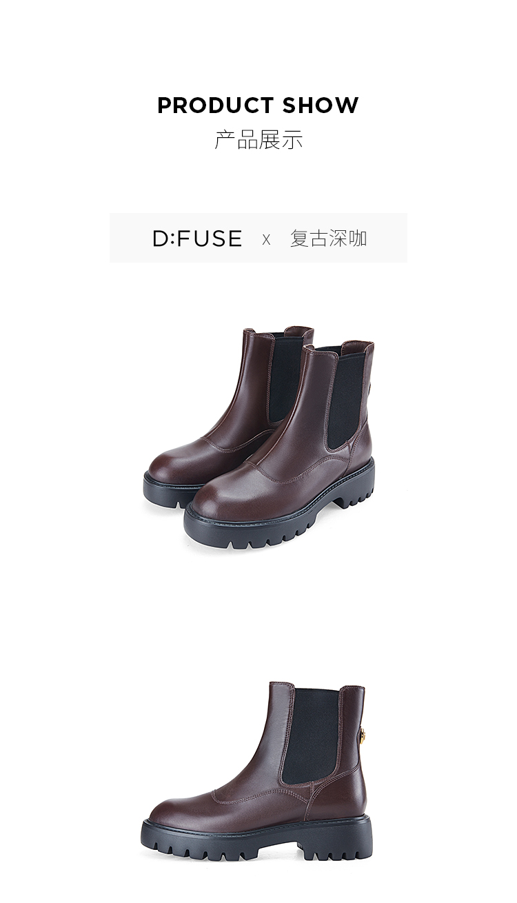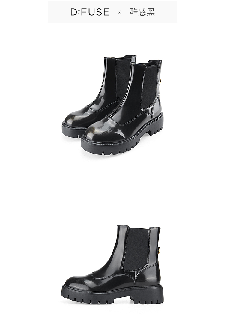 Dfuse迪芙斯冬季新款圆头厚底经典百搭切尔西短靴DF34116207
