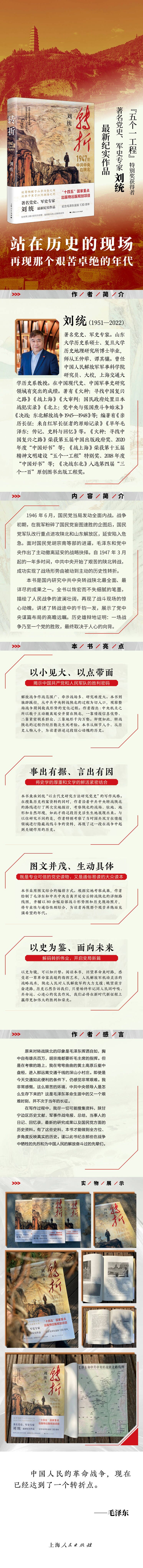 作者以恢宏而不失细腻的笔墨,描绘了人民战争的波澜壮阔,再现了战斗现场的惊心动魄,讲述了转战途中的千钧一发,展示了党中央谋篇布局的高瞻远瞩。历史雄辩地证明:一场战争乃至一个党的胜败,最终取决于人心的向背。