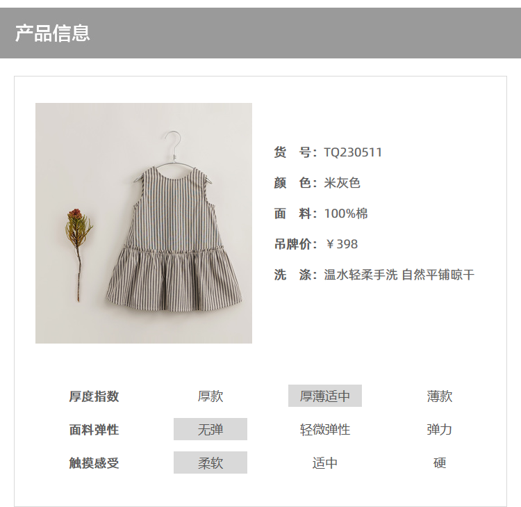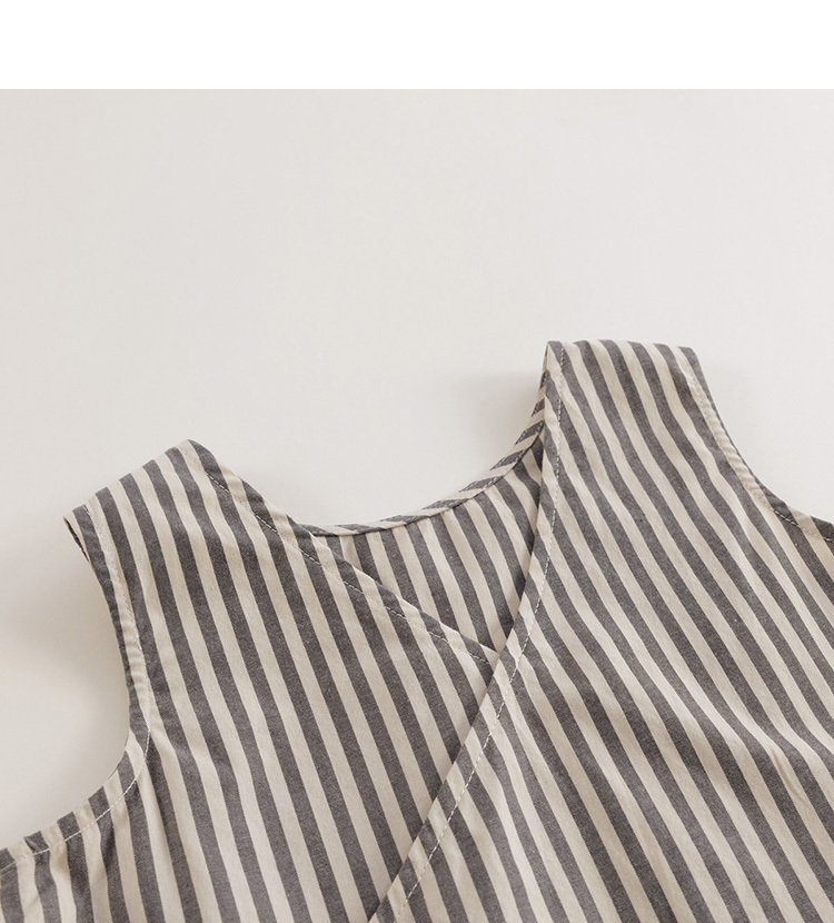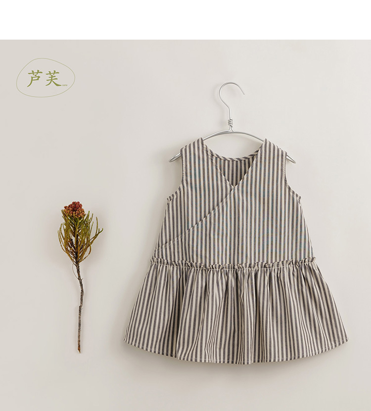 【马克珍妮 芦芙】新款夏装 女童灰米条纹纯棉连衣裙230511